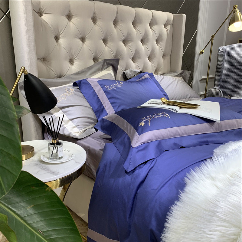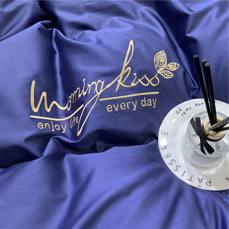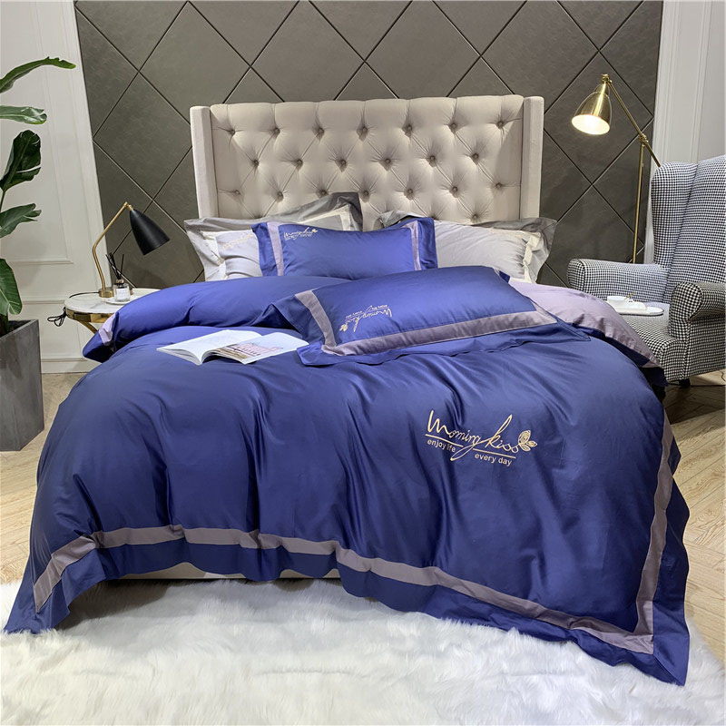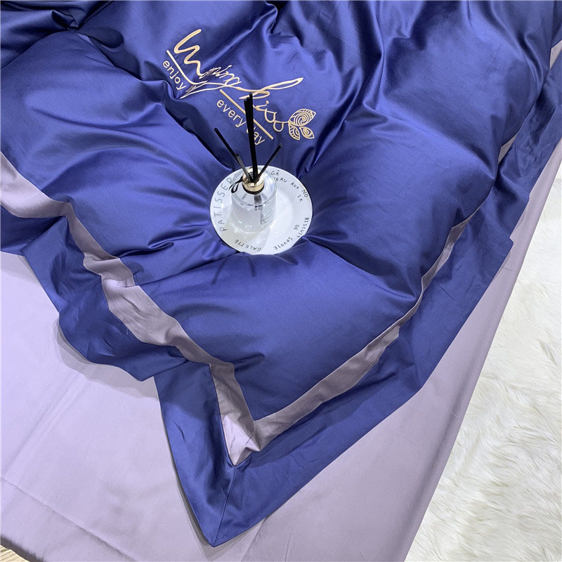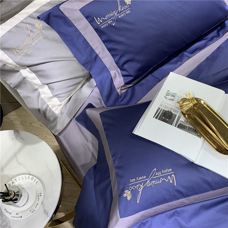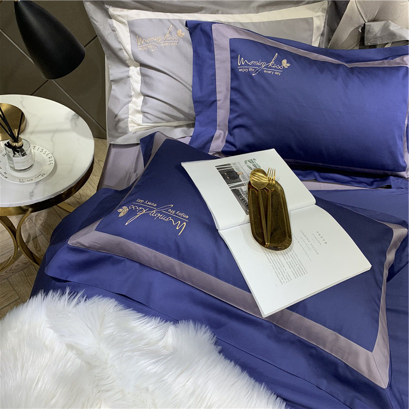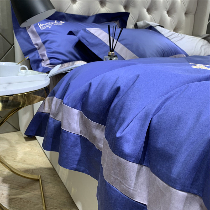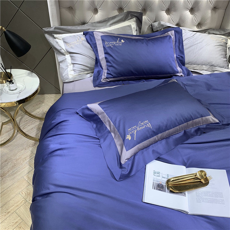 太古汇 2019新款纯色拼色绣花四件套 孔雀蓝