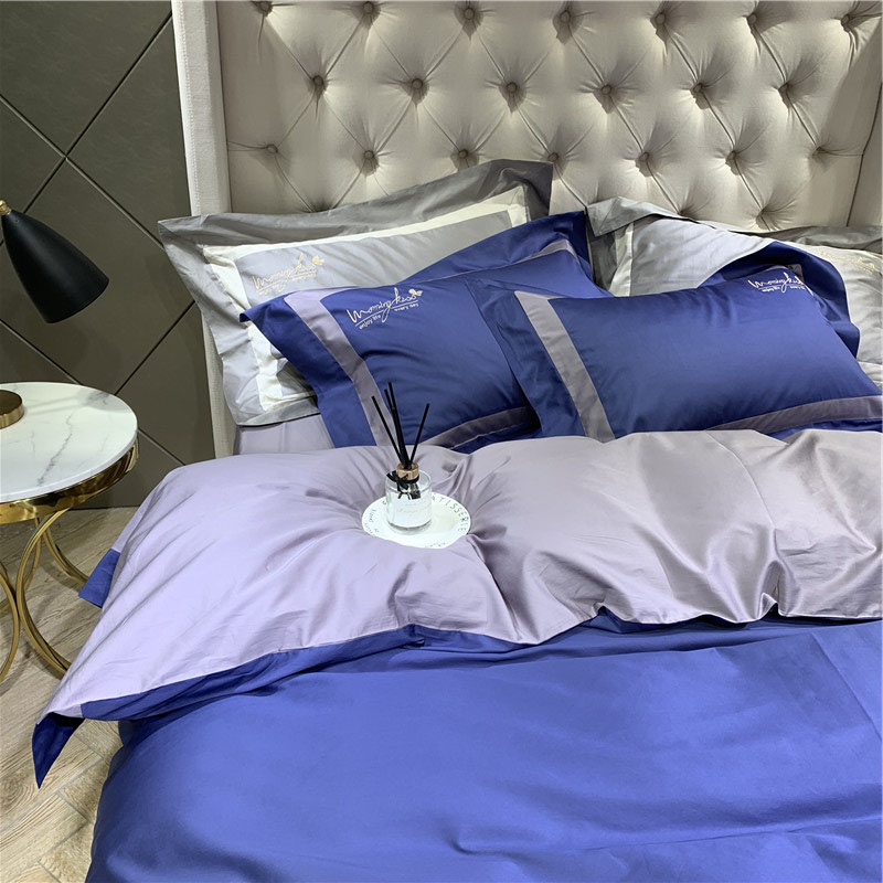 商品名称:太古汇 2019新款纯色拼色绣花四件套 孔雀蓝