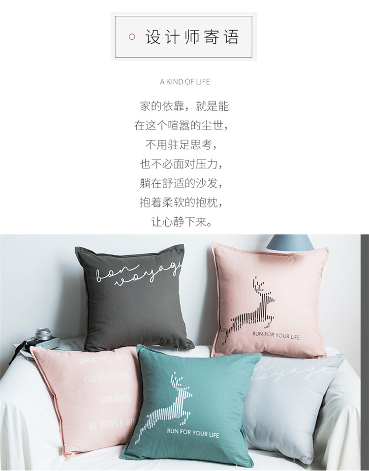 北纬27度 2019新款北欧风抱枕全棉系列麋鹿粉