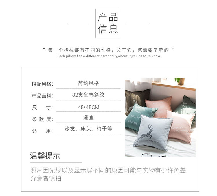 商品名称:北纬27度 2019新款北欧风抱枕全棉系列麋鹿粉
