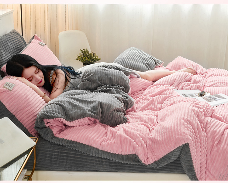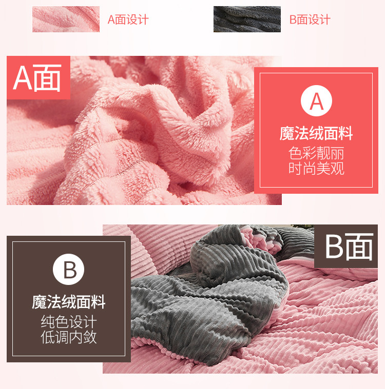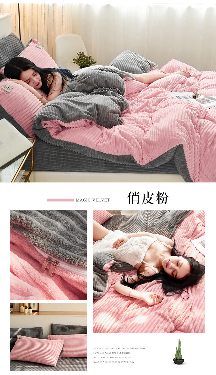 懒猫家纺 2020新款法莱绒水晶绒魔法绒四件套 俏皮粉