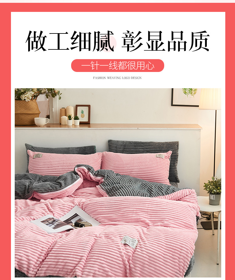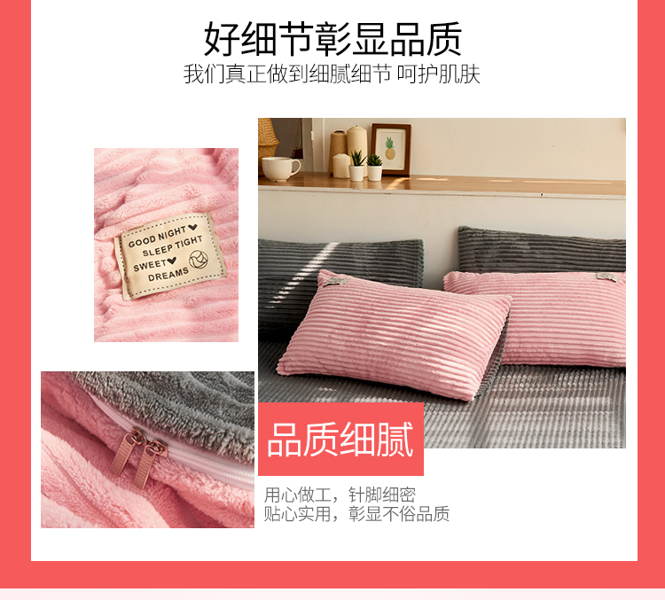商品名称:懒猫家纺 2020新款法莱绒水晶绒魔法绒四件套 俏皮粉