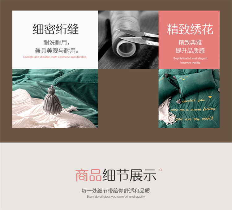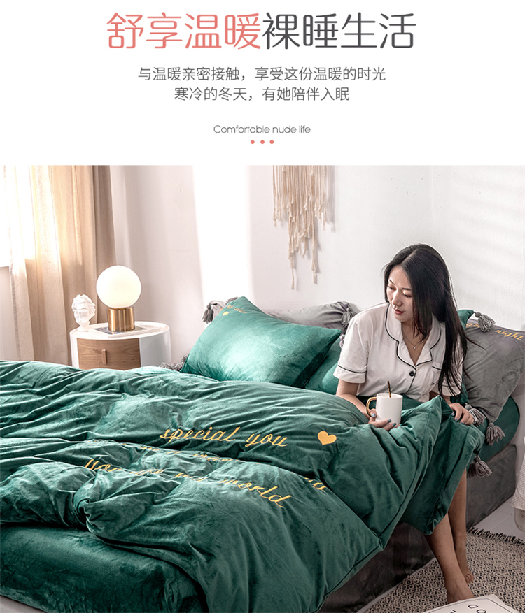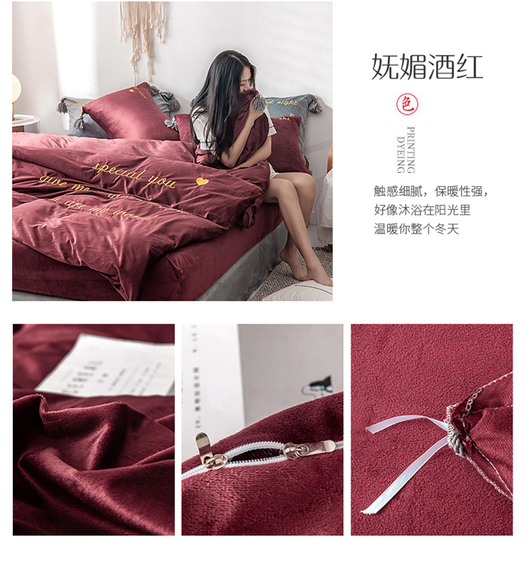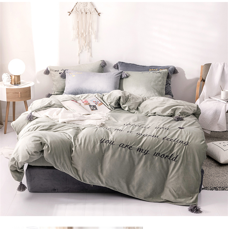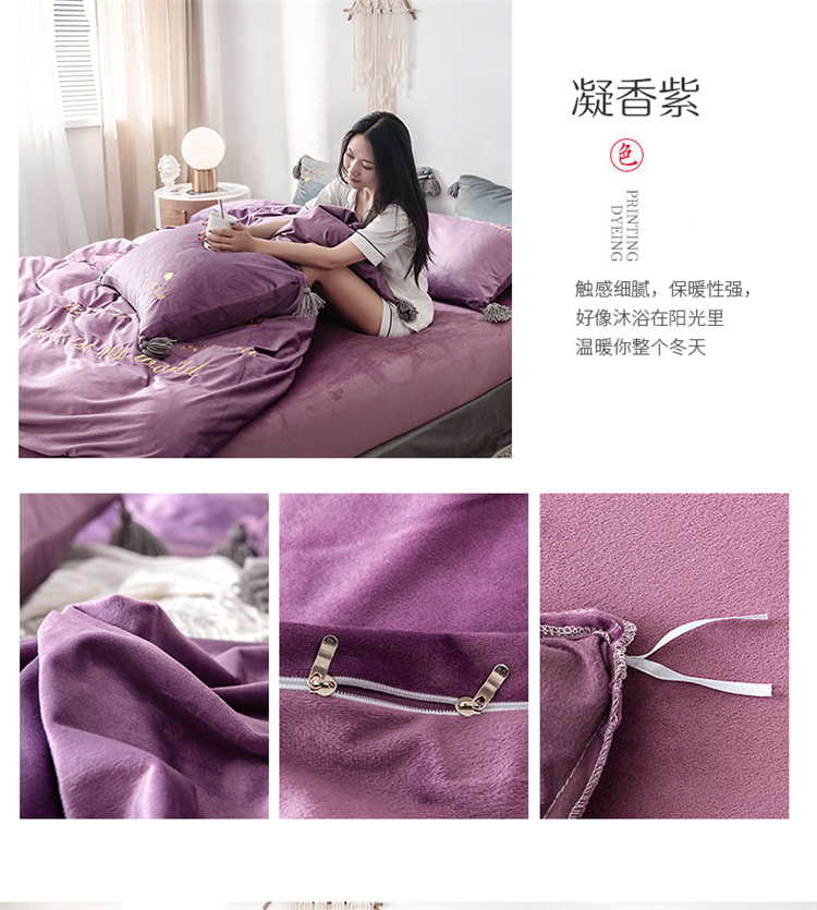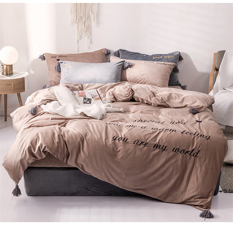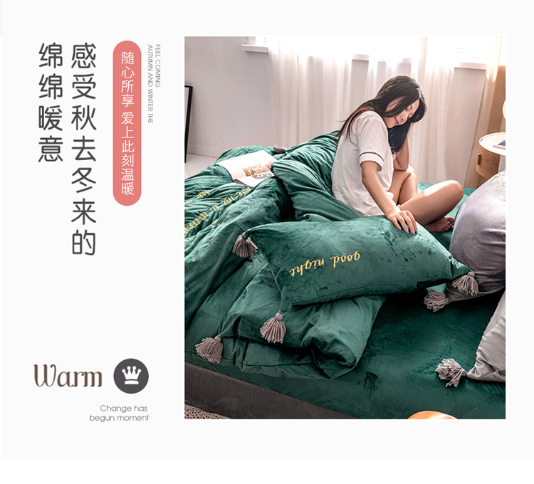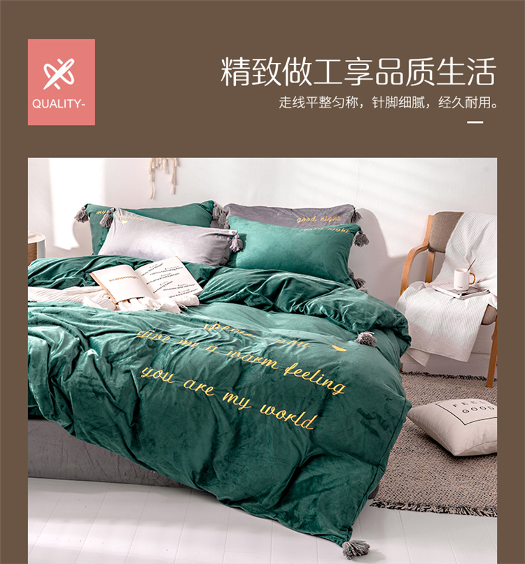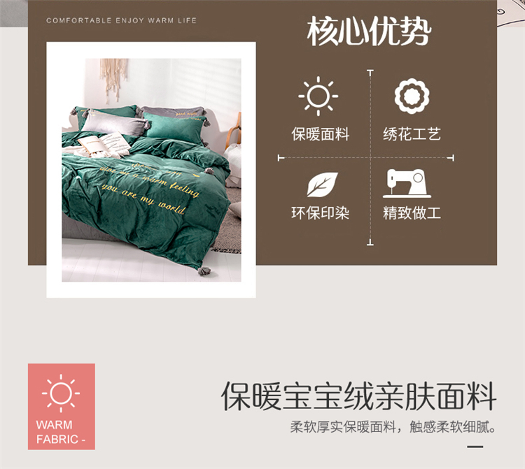 (总)北纬27度 2019新款流苏刺绣加厚宝宝绒四件套