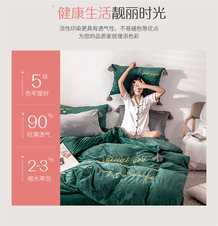 (总)北纬27度 2022新款牛奶绒四件套爱的华尔兹,爱的华尔兹-粉玉,爱的华尔兹-姜黄,爱的华尔兹-绿,爱的华尔兹-天蓝
