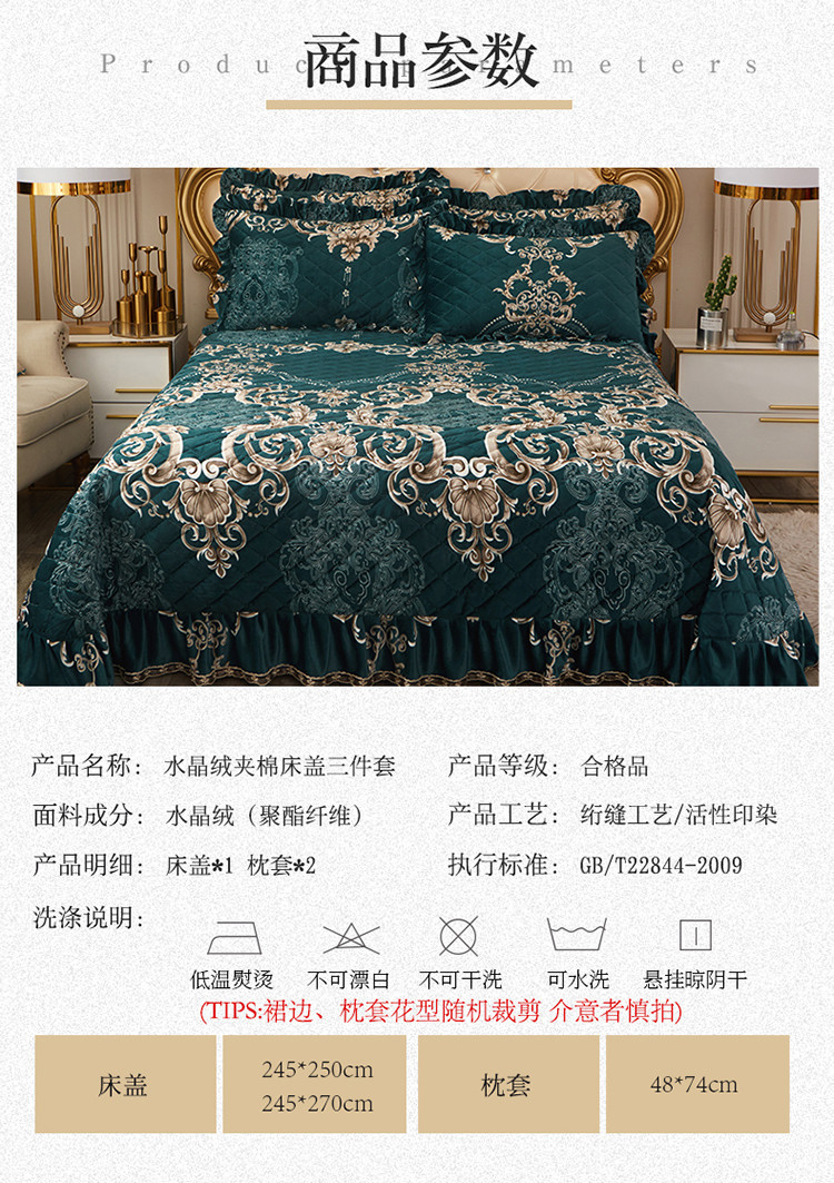 商品名称:宜凡家纺 2019水晶绒床盖三件套 欧式情怀