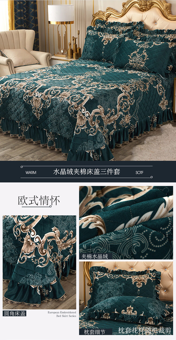 宜凡家纺 2019水晶绒床盖三件套 欧式情怀