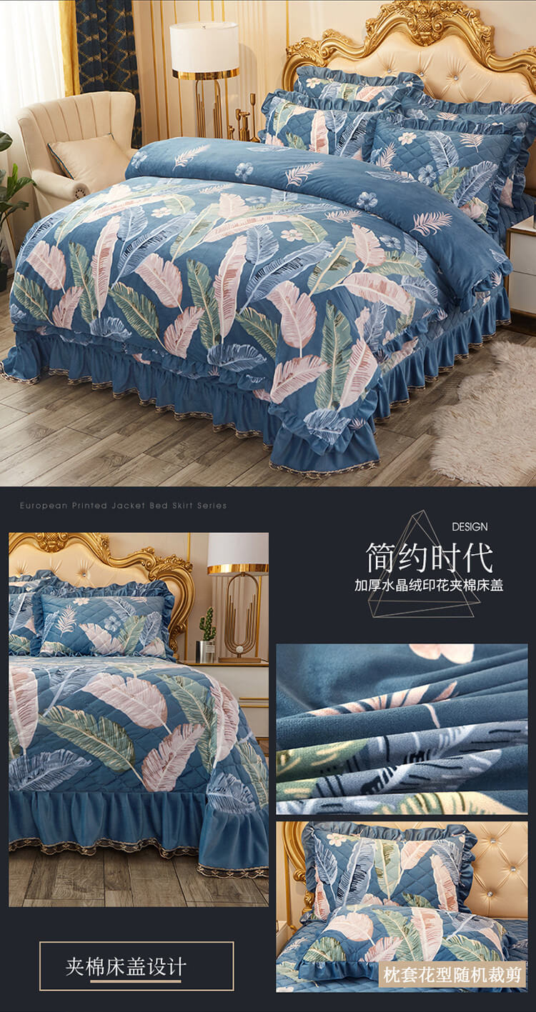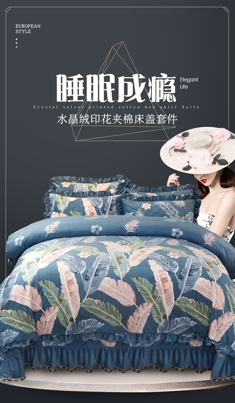 宜凡家纺 2019水晶绒夹棉床盖四件套 简约时代