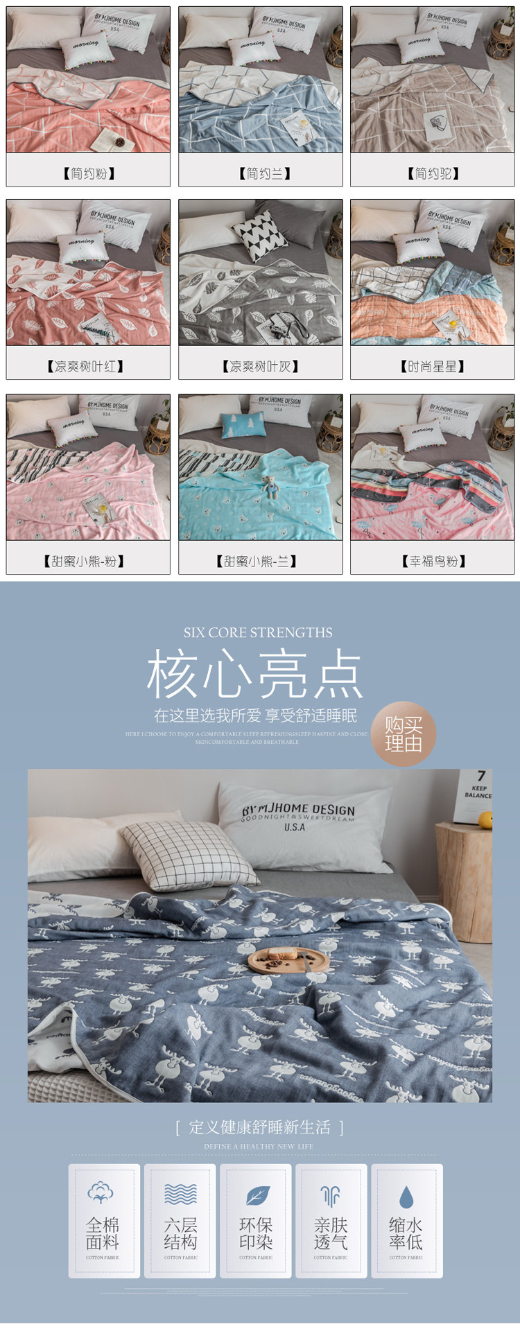 (总)朴尔家纺-毛巾被 2026新款彩棉云柔棉三层纱布毛巾被,组合图仅做展示不可下单,花自盛开,物语花聚,幸运鹿,熊猫派对,绚烂繁花,银杏知秋,郁金香来
