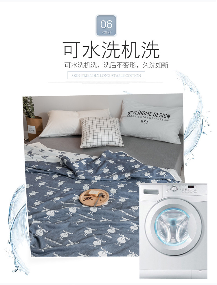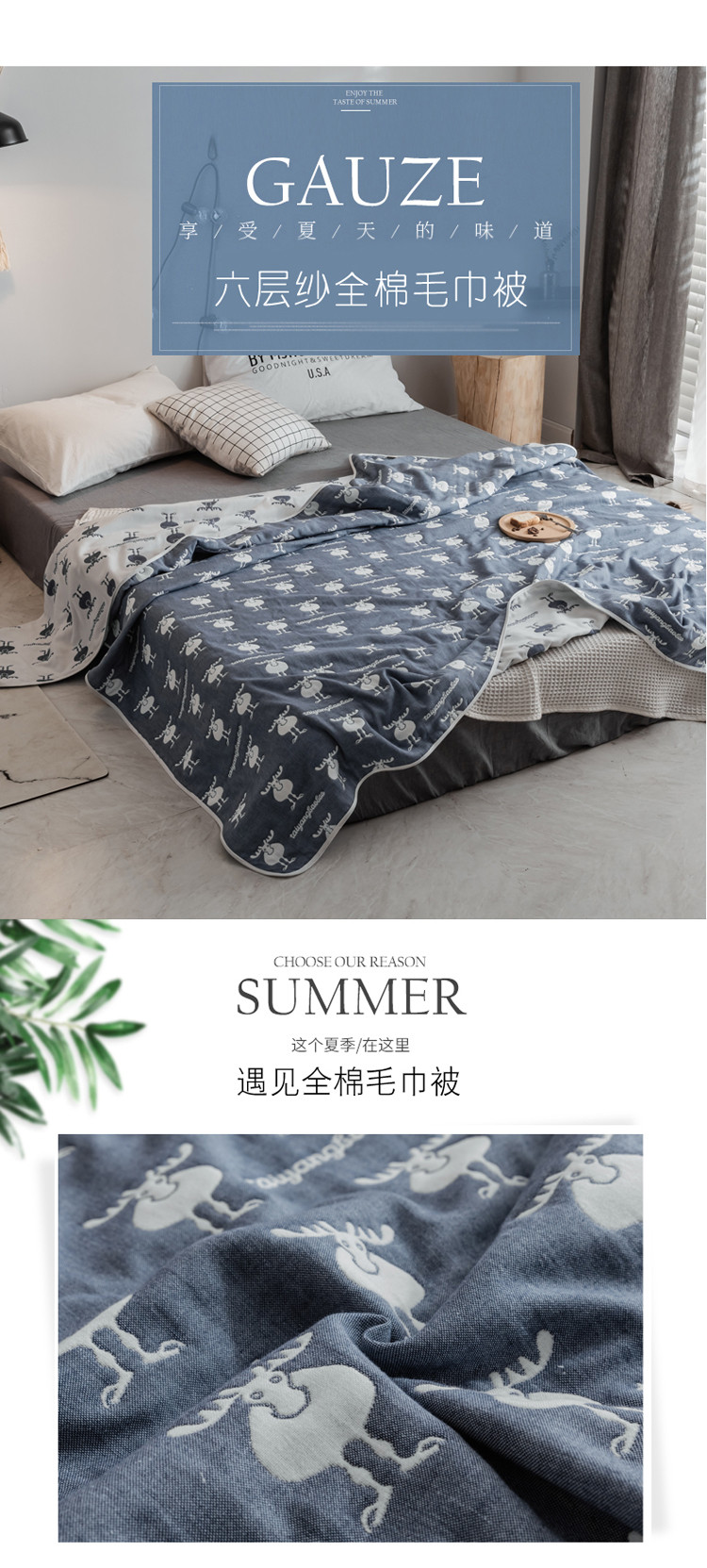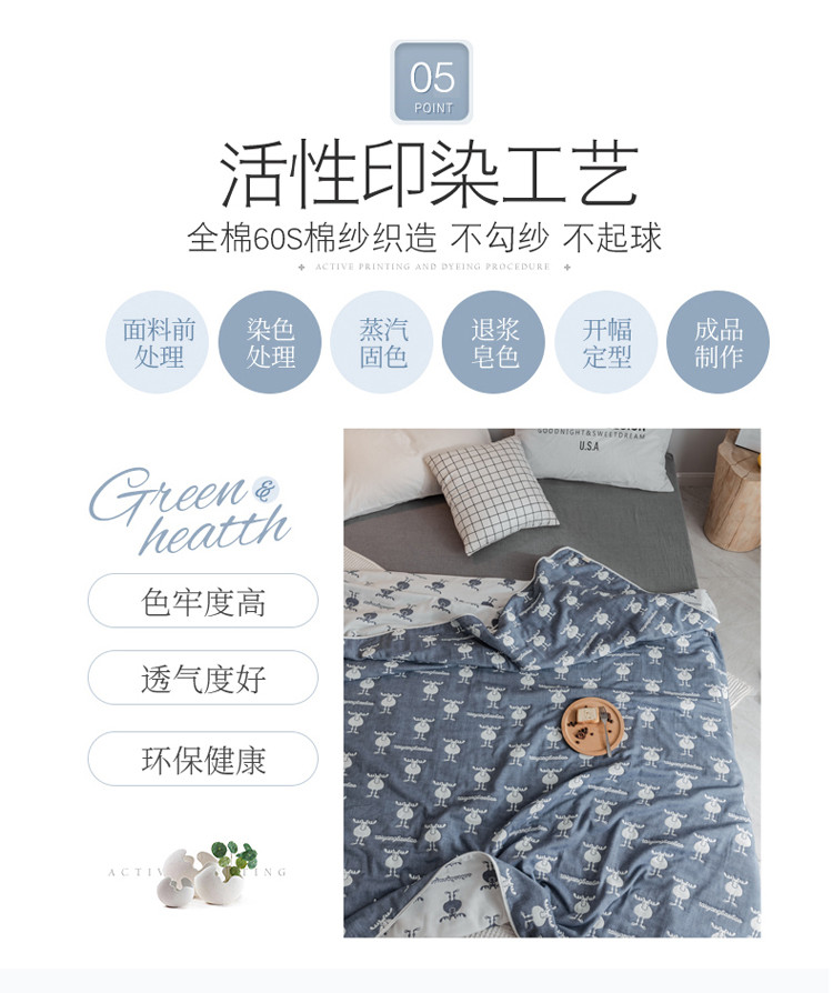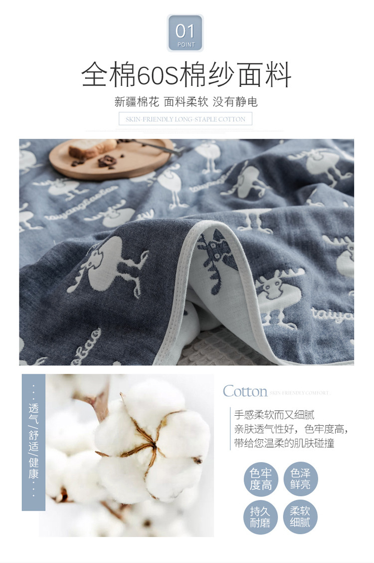 商品名称:朴尔家纺 六层全棉纱布毛巾被 麋鹿蓝