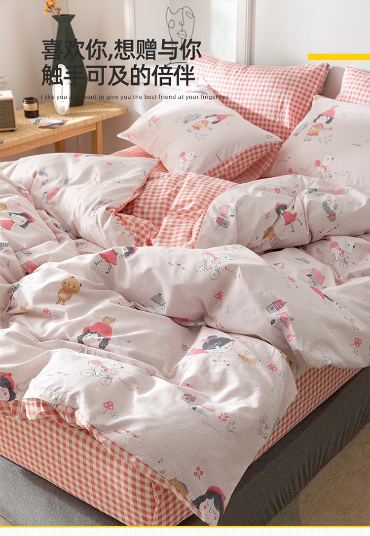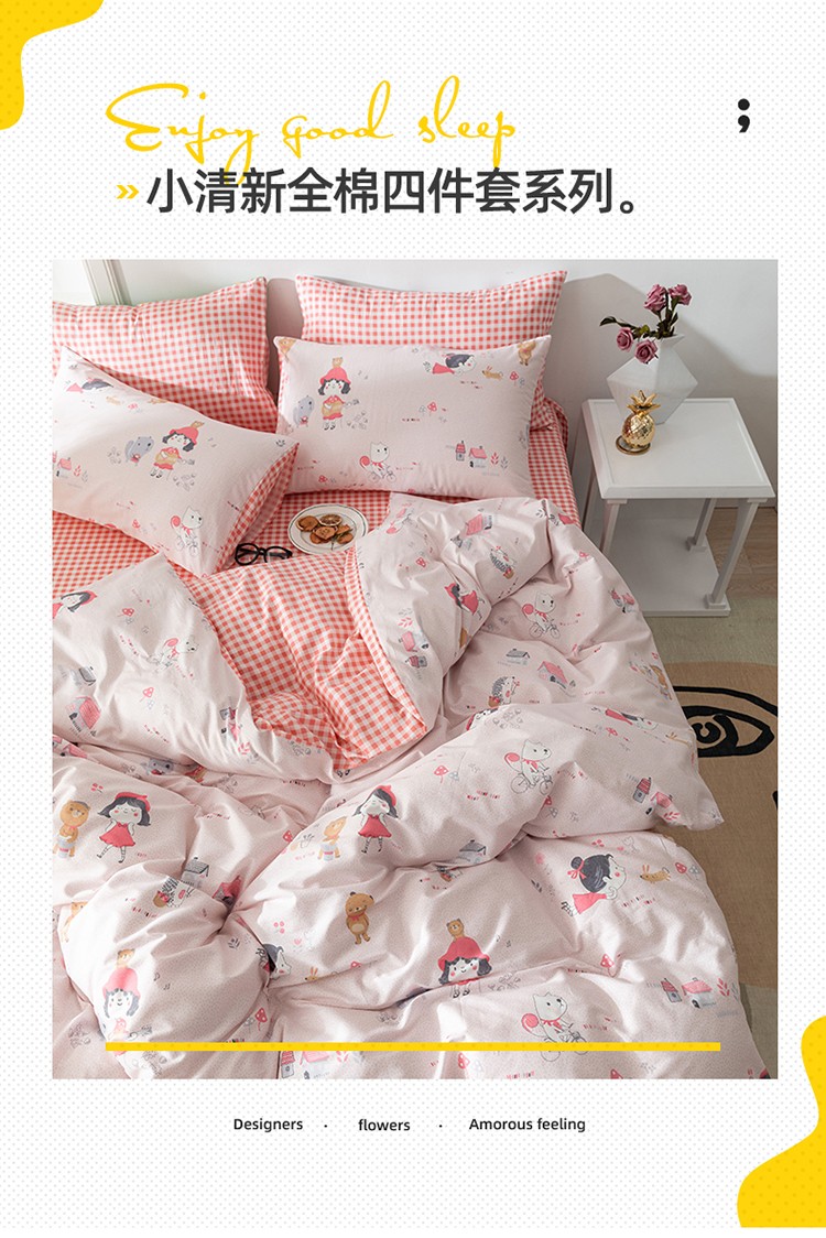 (总)珺柔家纺 2025新款全棉双层纱印花四件套,粉豹纹,焦糖小曲奇,礼物女孩,猫狗日记,奶油星空,线条苹果猫,小飞象,小狗的家,樱桃,樱桃西高地