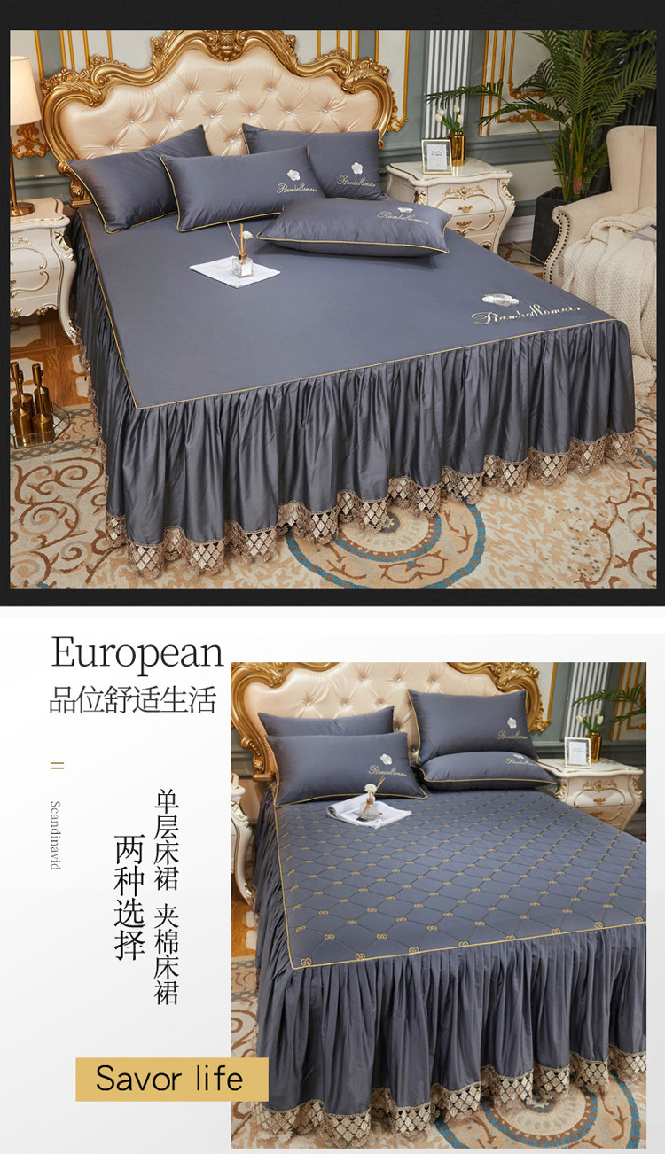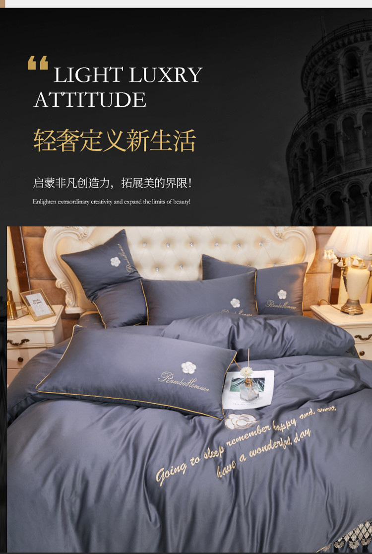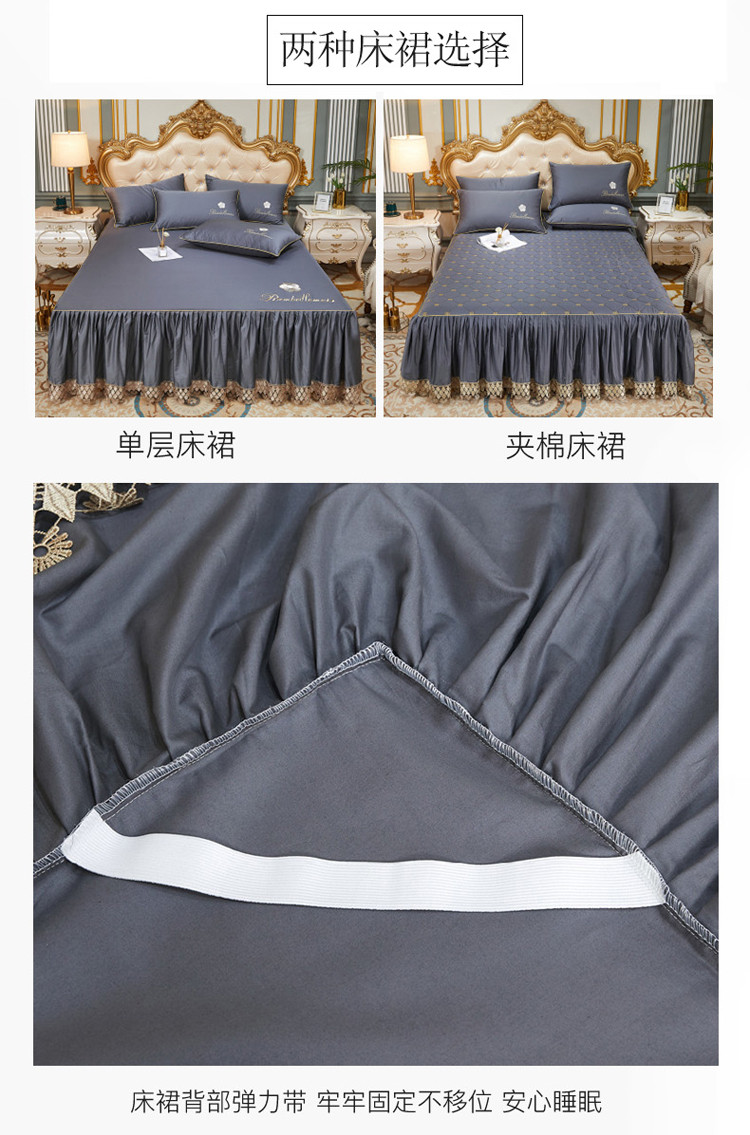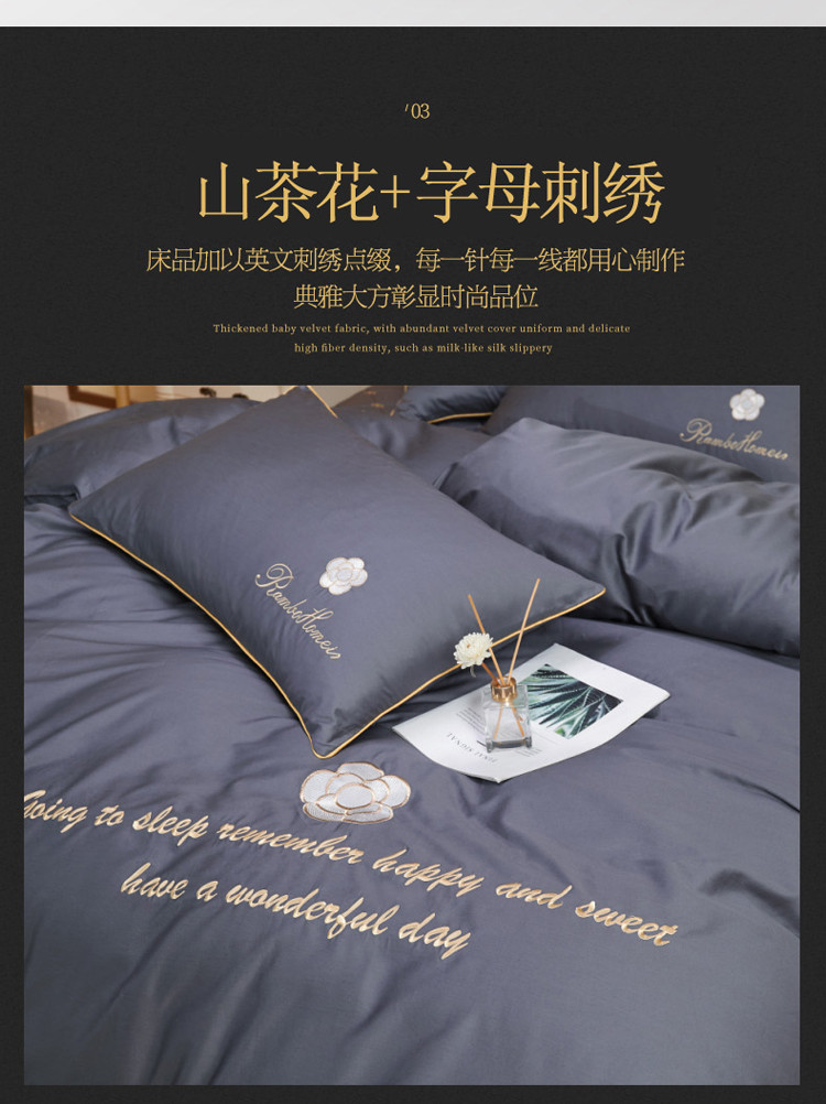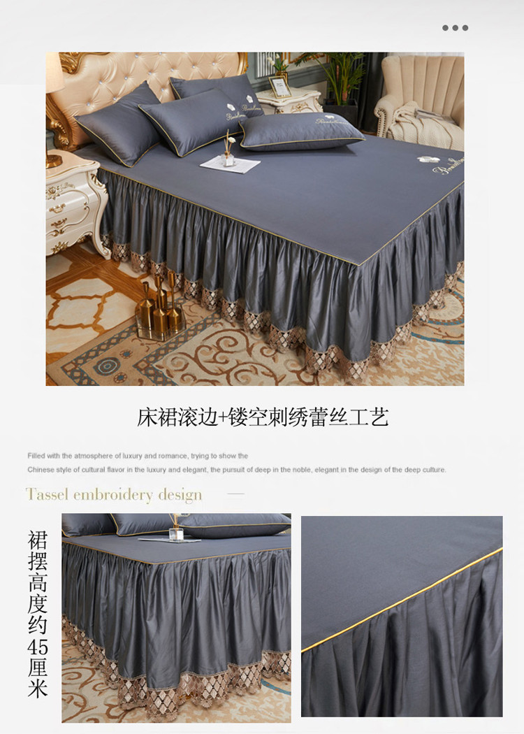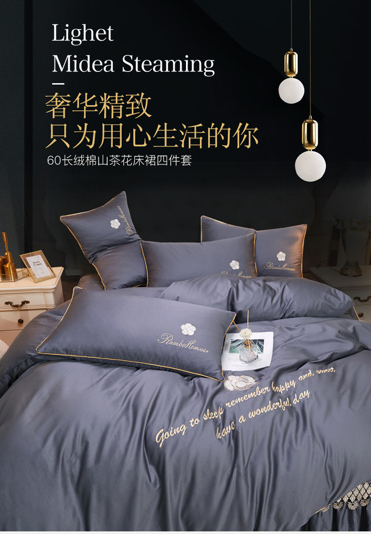 当前位置: 91家纺网 > 商品网购 > 床品套件 > 四件套 > 长绒棉四件套 > 菊上 2021新款60支长绒棉山茶花系列床裙款四件套 绅灰