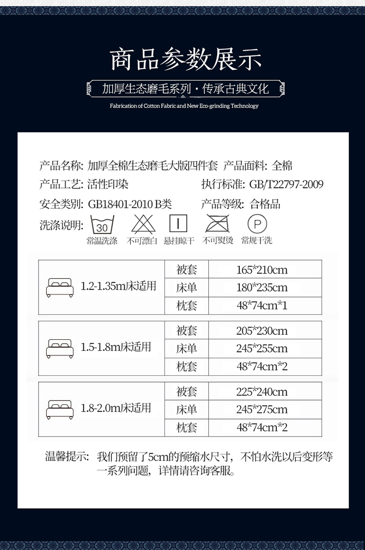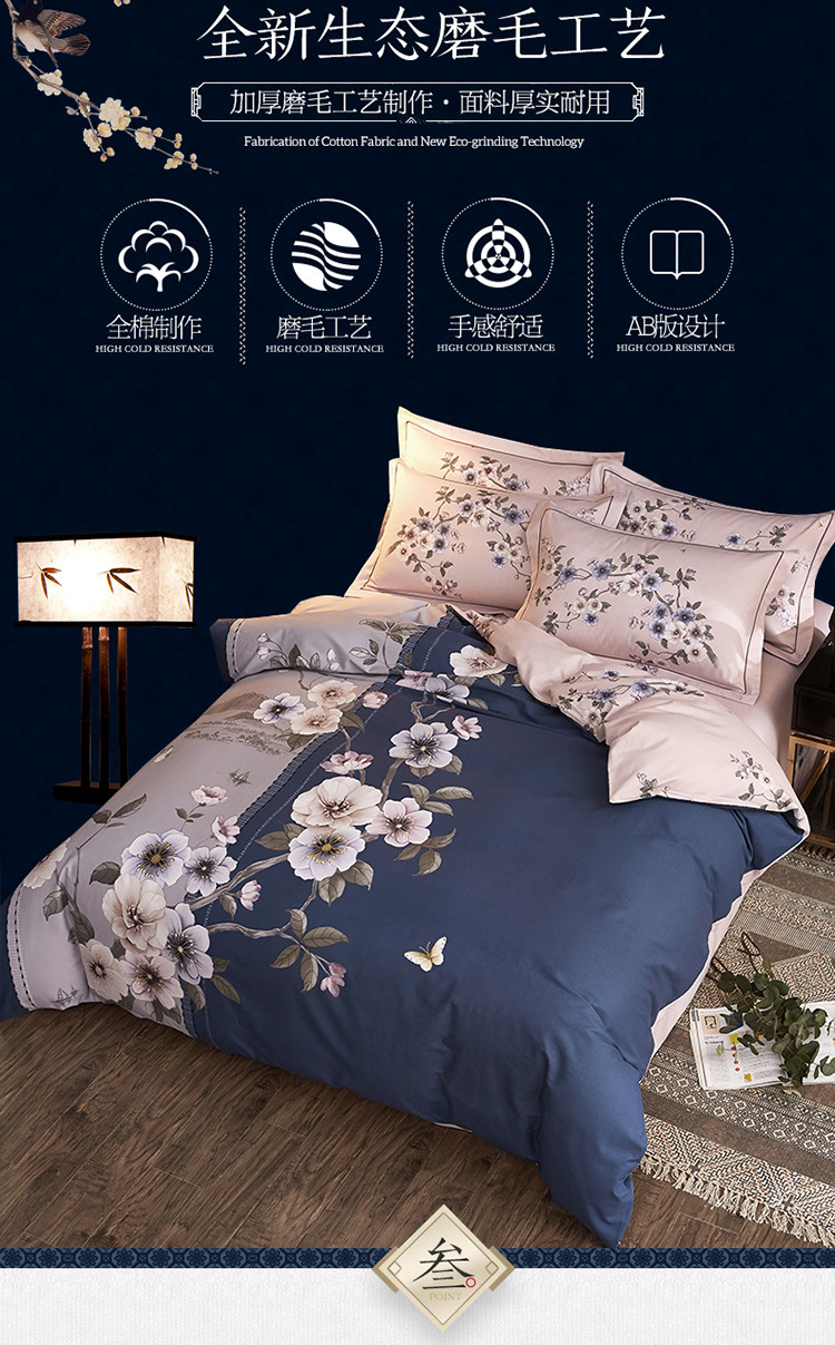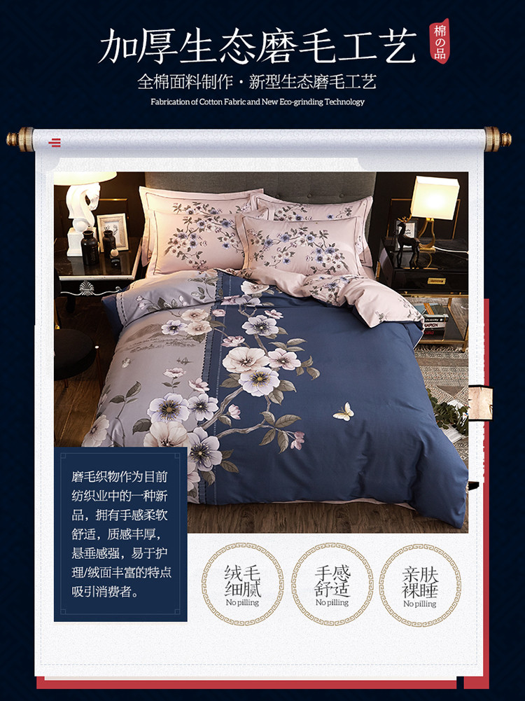 商品名称:雲归梦 2020新款全棉生态磨毛大版四件套 忆江南