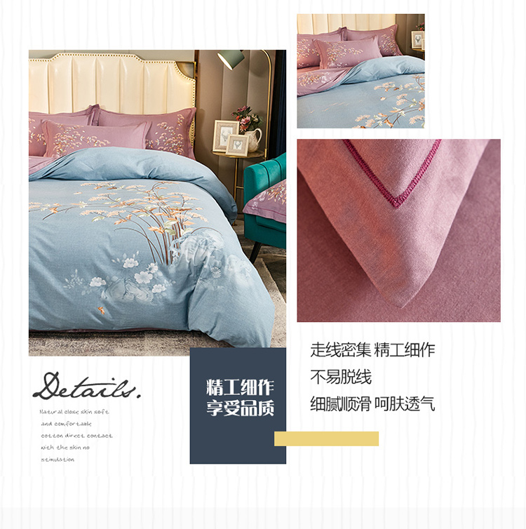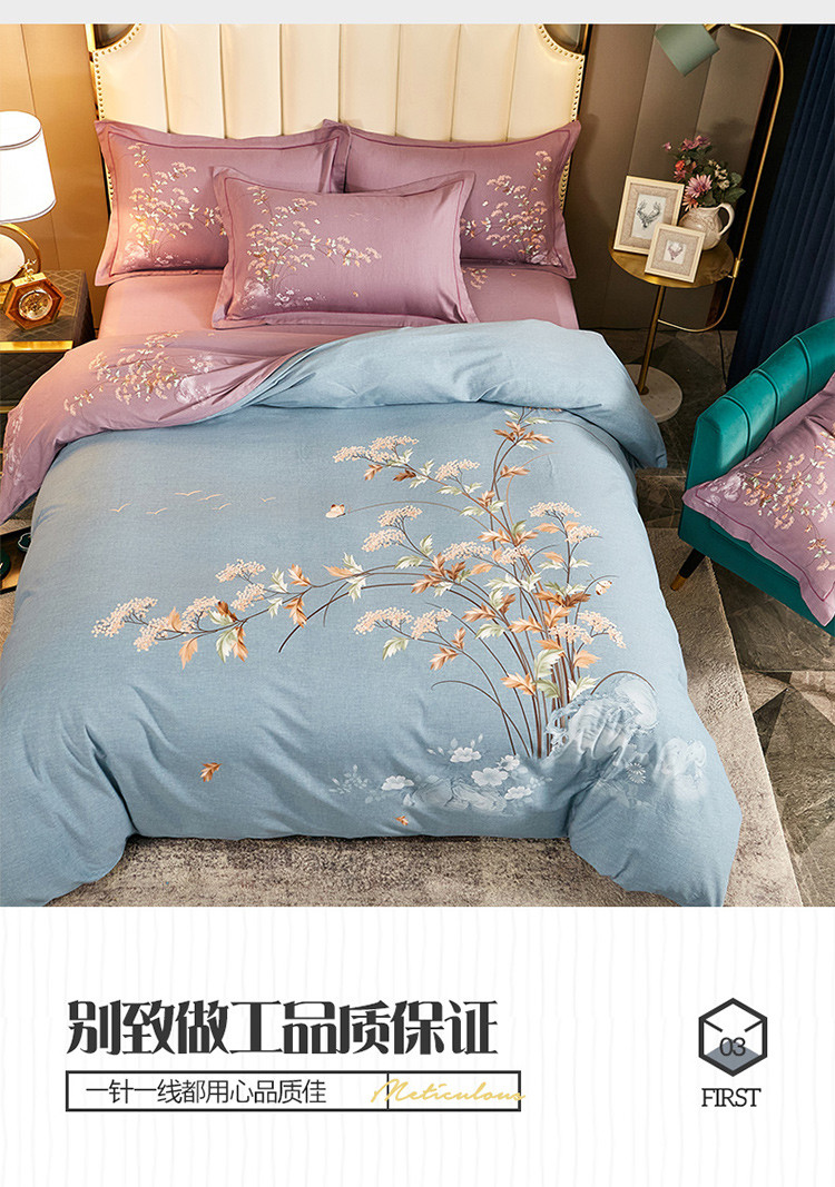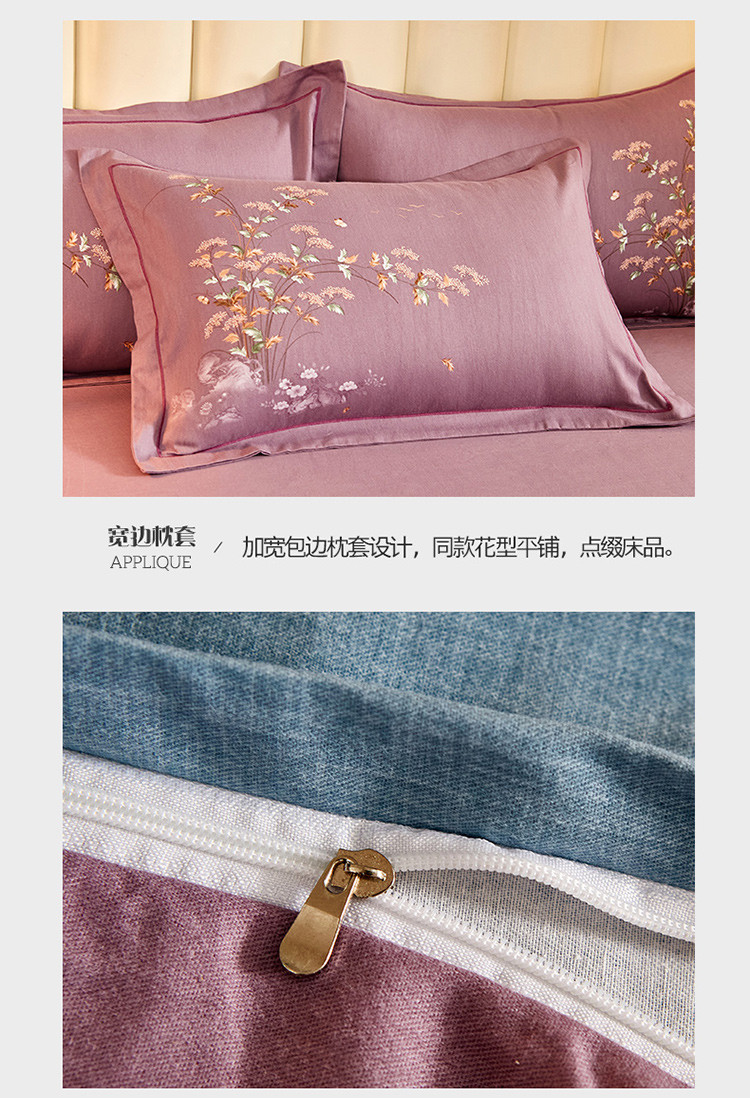 (总)雲归梦 2021新款全棉生态磨毛刺绣四件套,慕思-橙色,慕思-粉紫,慕思-灰,慕思-米黄,慕思-青绿,慕思-天蓝