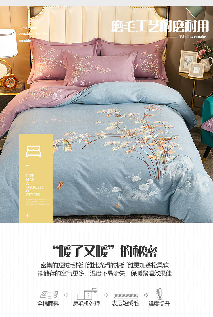(总)雲归梦 2025新款全棉火山磨毛精梳棉生态磨毛纯棉四件套,玫瑰香雅,繁花绽放棕,花语诺,古韵佳人,格风,梵希 桔,贝影,巴特罗-粉,极光蓝,极光绿,经典爱恋,经典风,经典国度,静初黄,浪漫时光棕,利奥 灰,恋爱 叶,爱情海,墨雨人间,南瓜甜心咖,欧雅 绿,飘摇蓝,飘颖,倩影棕,沁语繁花粉,轻盈花语豆沙,情歌 灰,事事如意,香叶青春,星晴 咖,叶秋 紫,悠闲 米,悠悠叶,知画紫