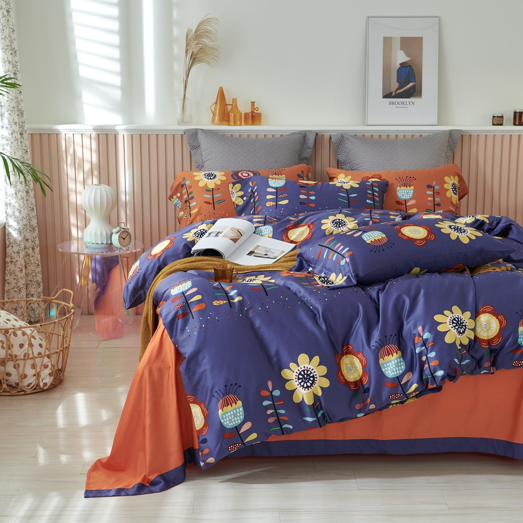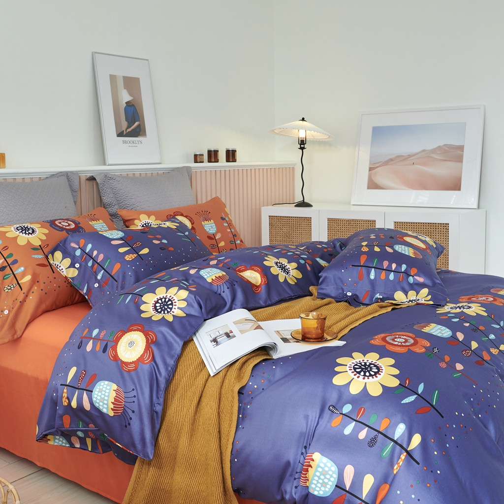 优然居 2020新款60S长绒棉活性印花四件套 春华蓝