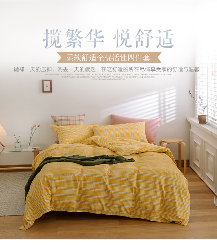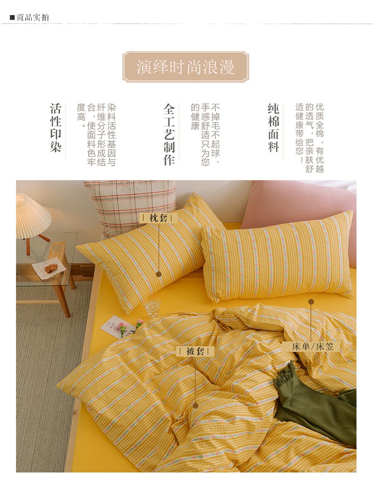 (总)窝米2022新款13370全棉四件套花卉系列,春风里,青柚,秋收,水波纹米驼,水波纹炭黑,恬谧,夏花,云溪红,云溪黄