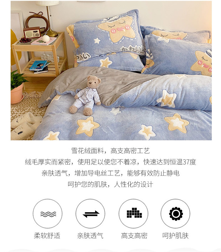 川悦生活 2020新款雪花绒四件套 晚安星语