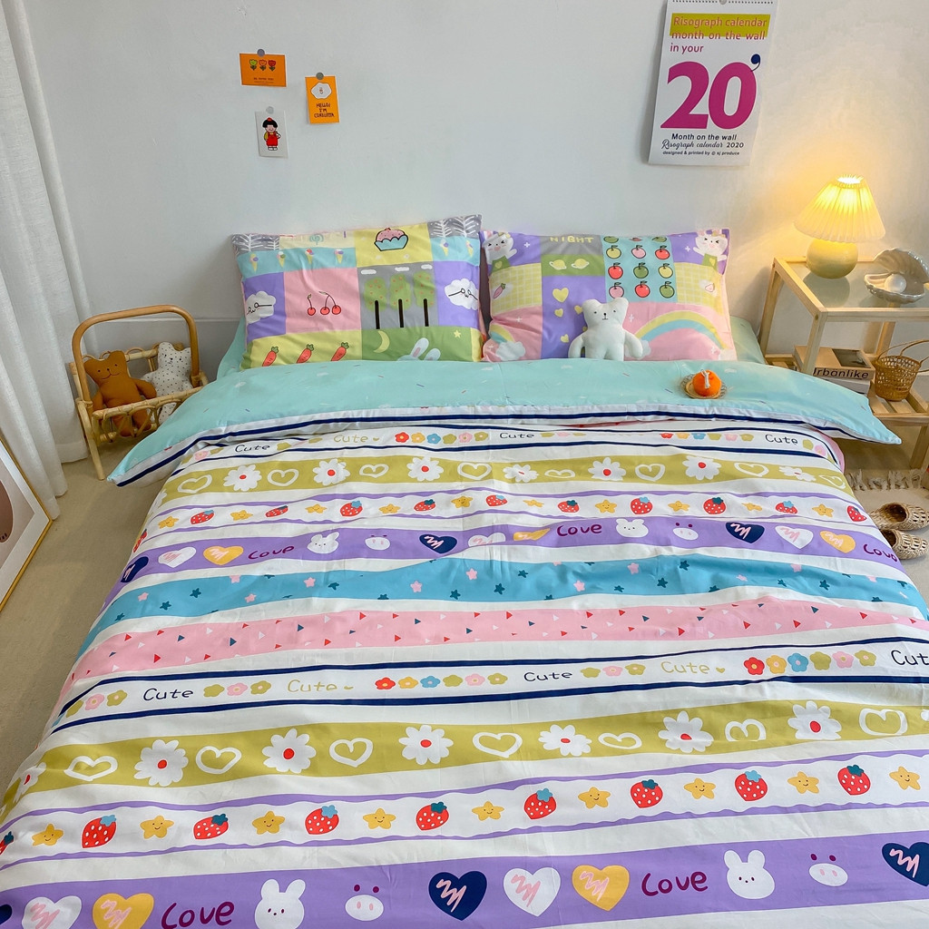 商品名称:星期八 2020新款全棉13070开学四件套 草莓小兔