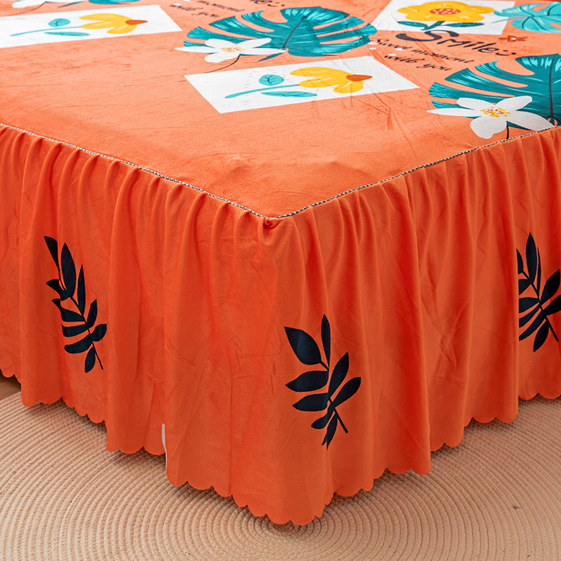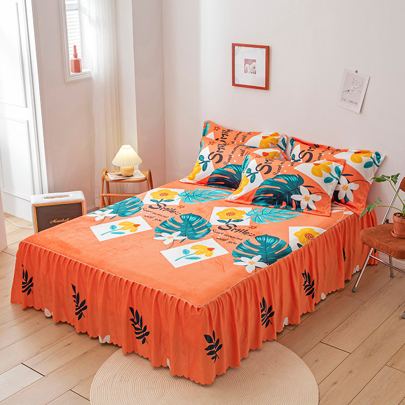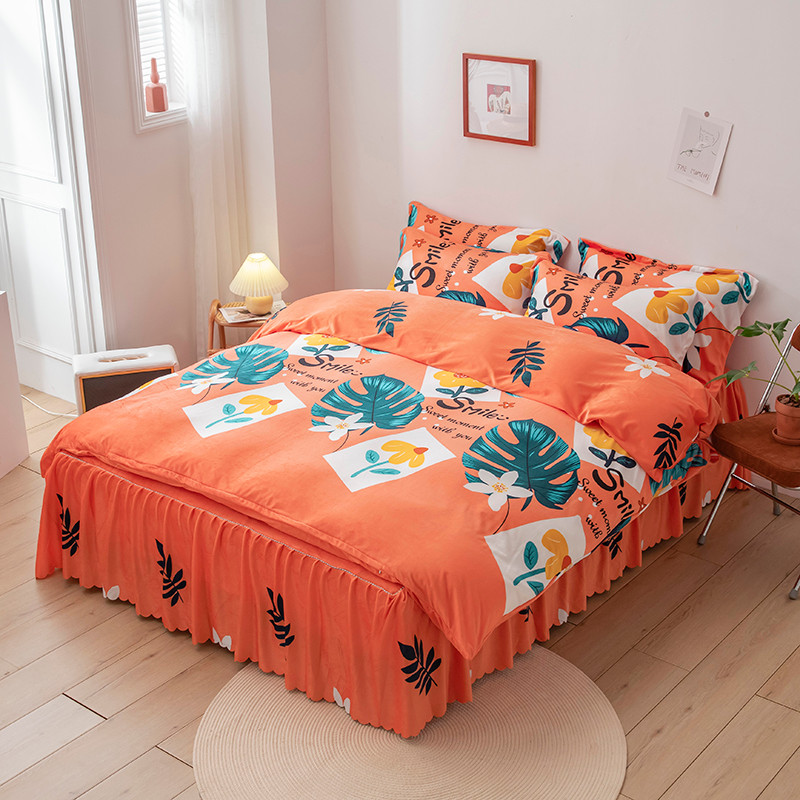 商品名称:纽缦 2020新款绒单层床裙四件套 陌上花开橘红