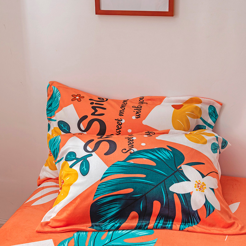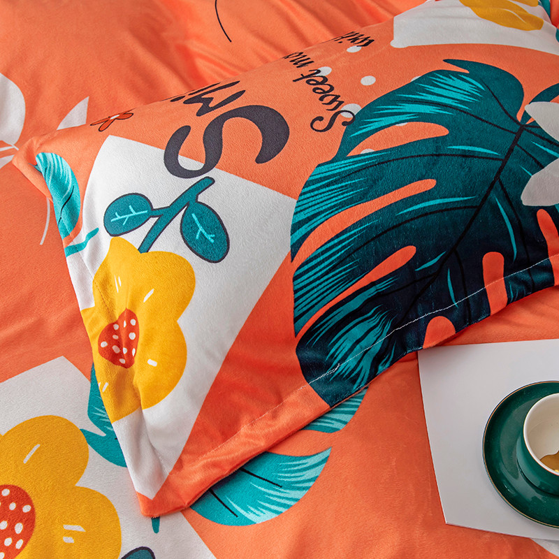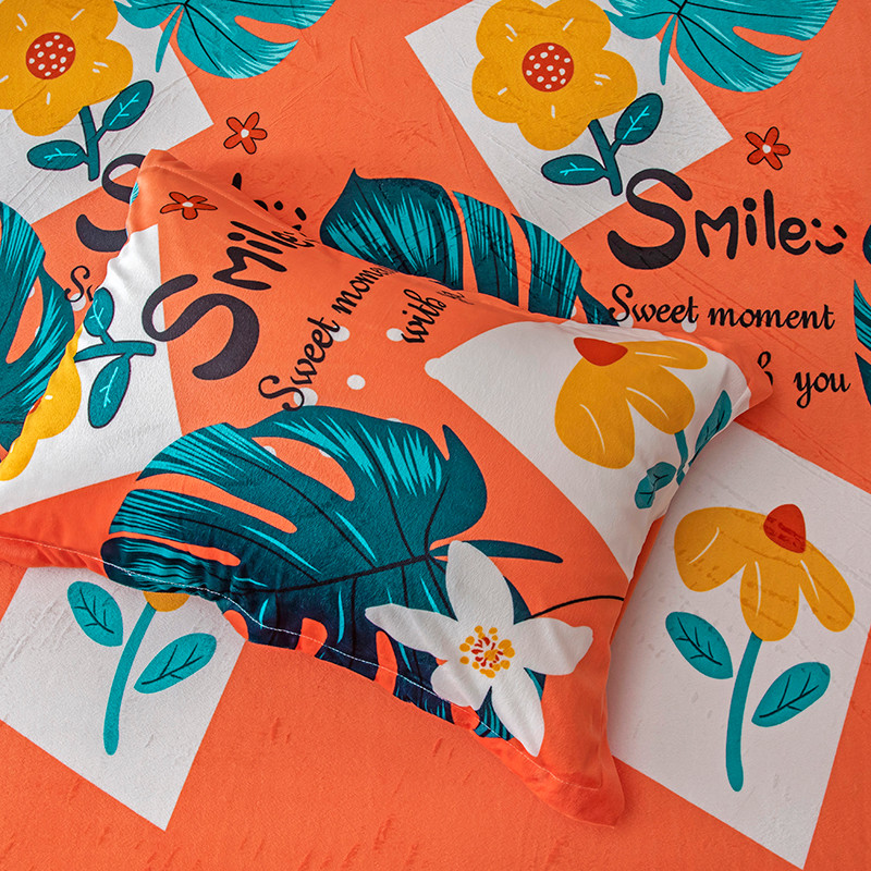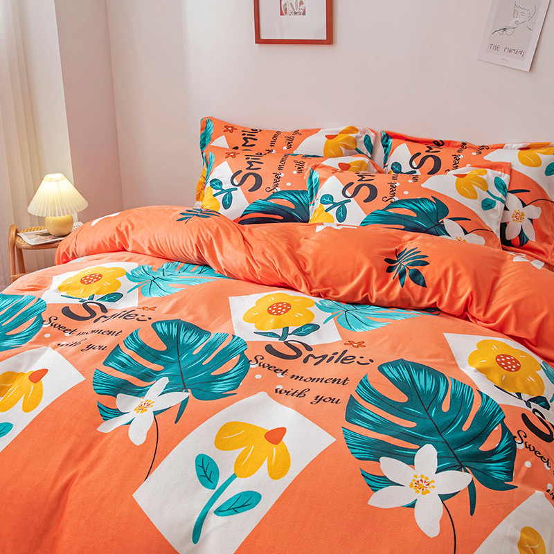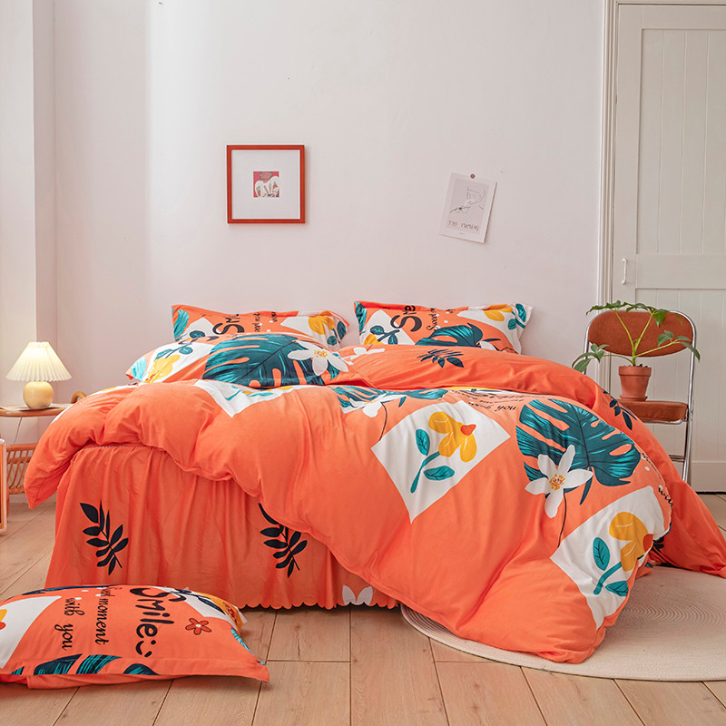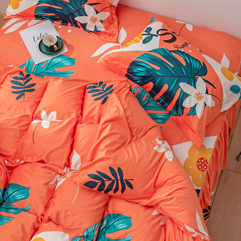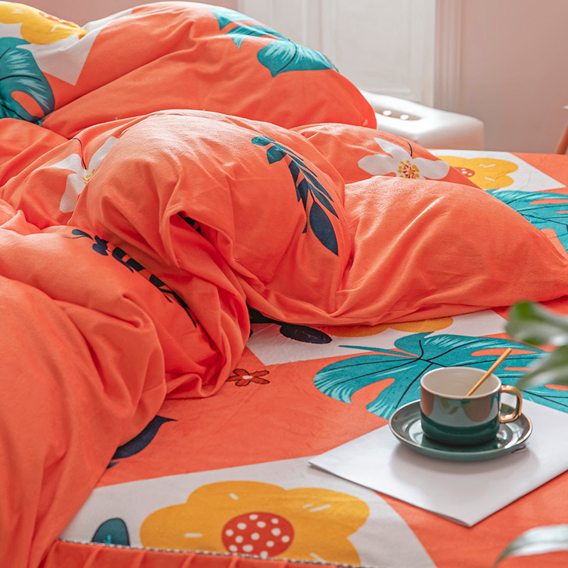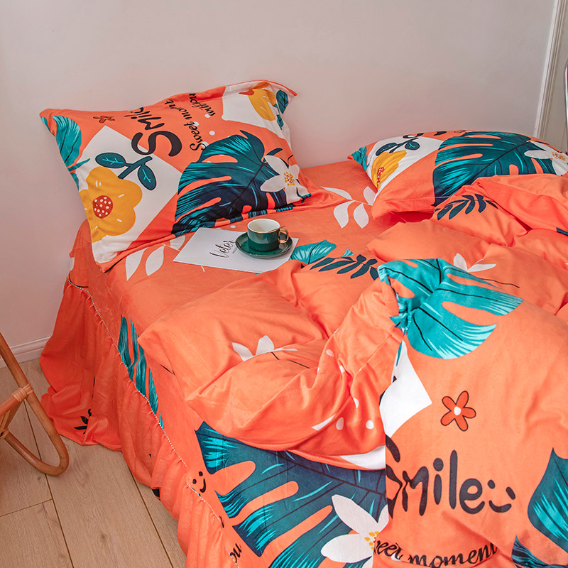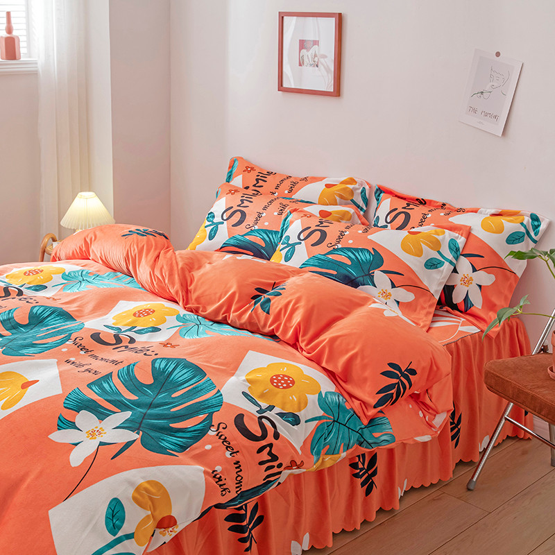 纽缦 2020新款绒单层床裙四件套 陌上花开橘红