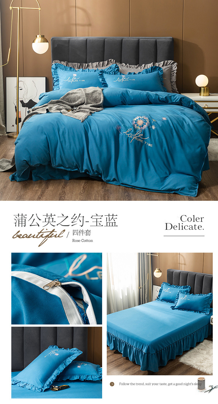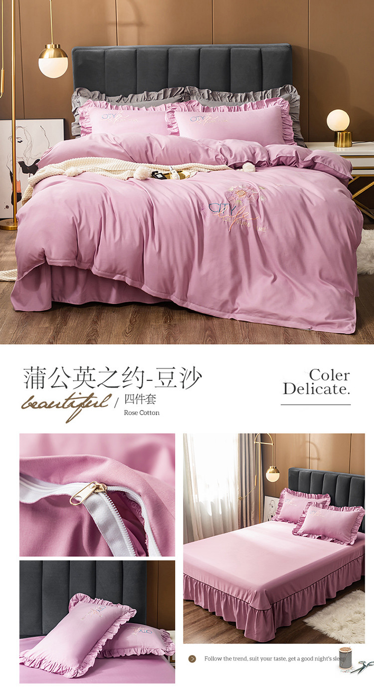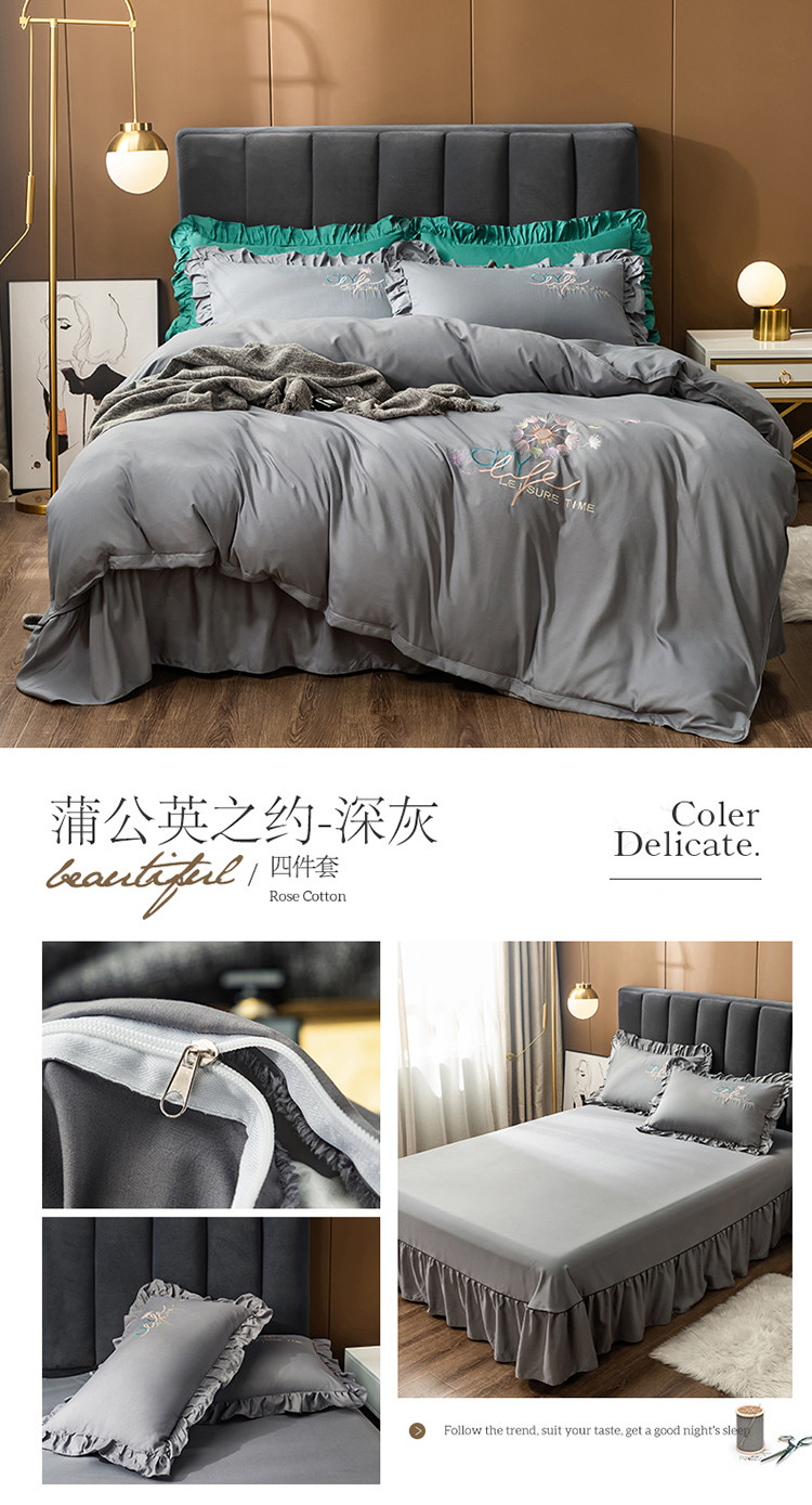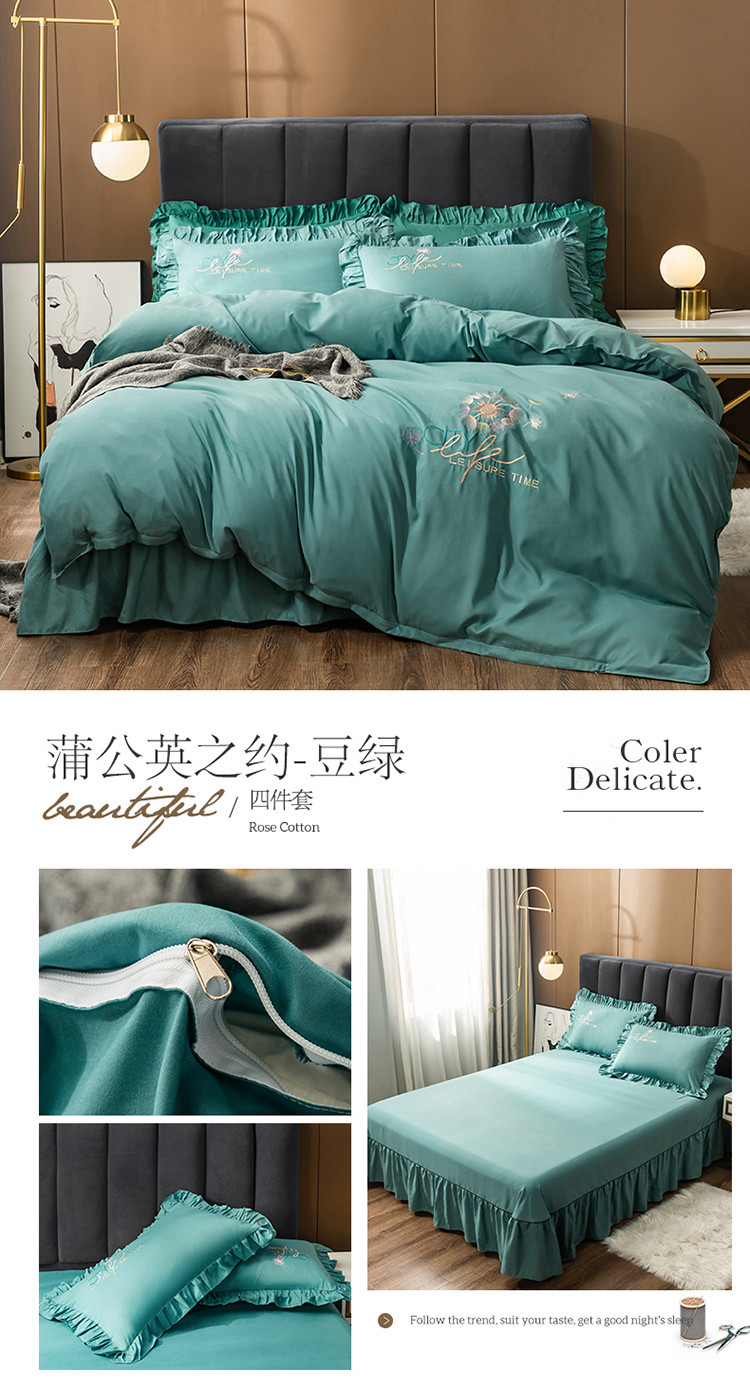 (总)伊而梦 2023新款抗菌新疆棉刺绣床裙款四件套
