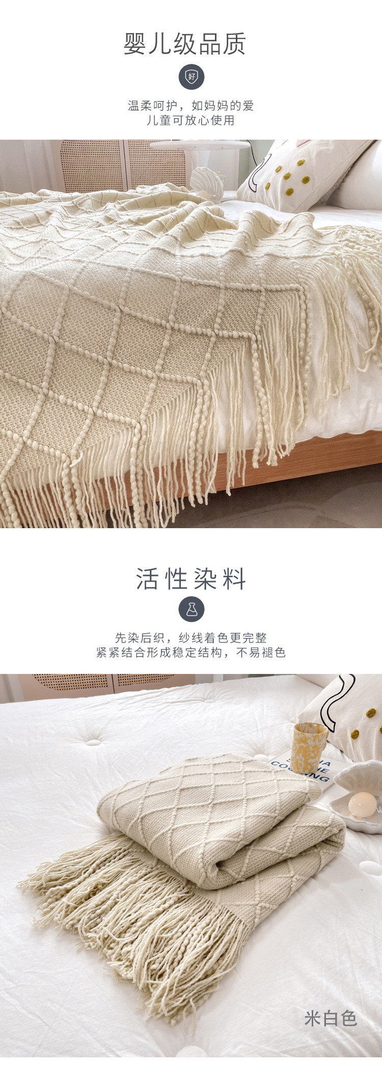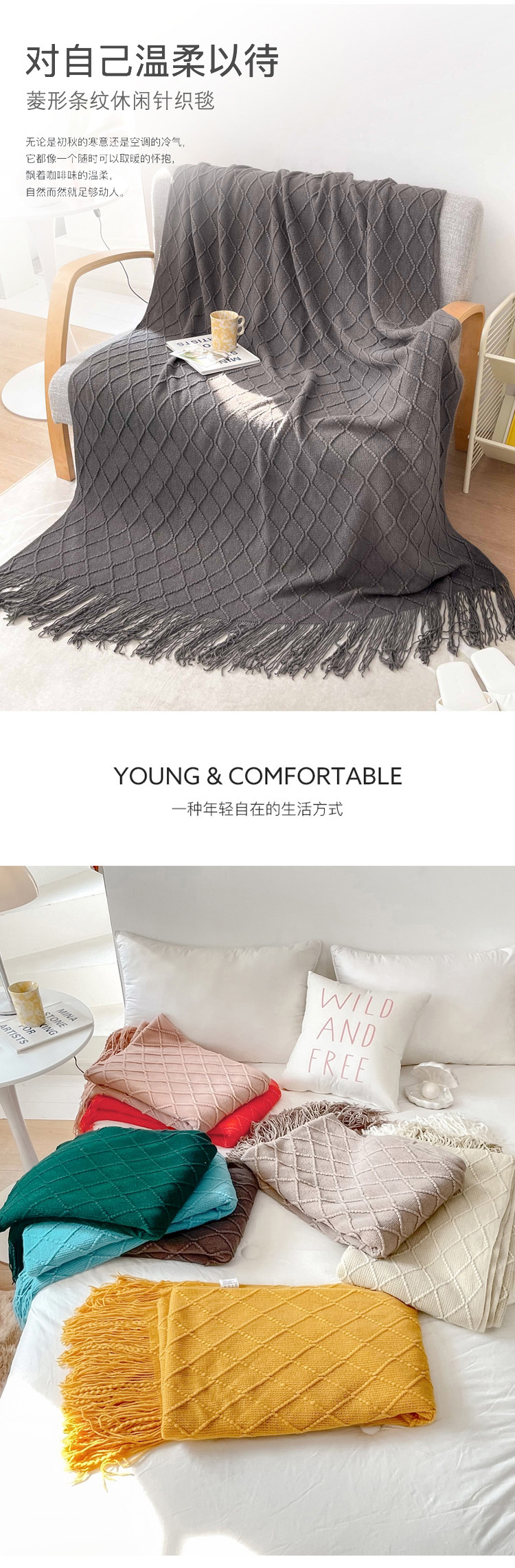 商品名称:朴尔针织流苏搭毯搭巾盖毯沙发巾床尾毯床尾旗酒店毯毛毯 湖蓝色