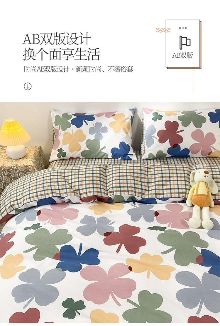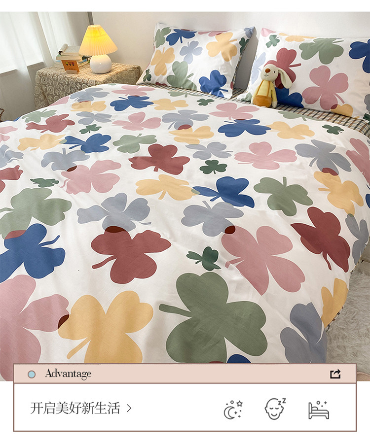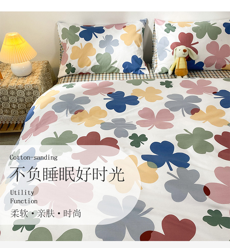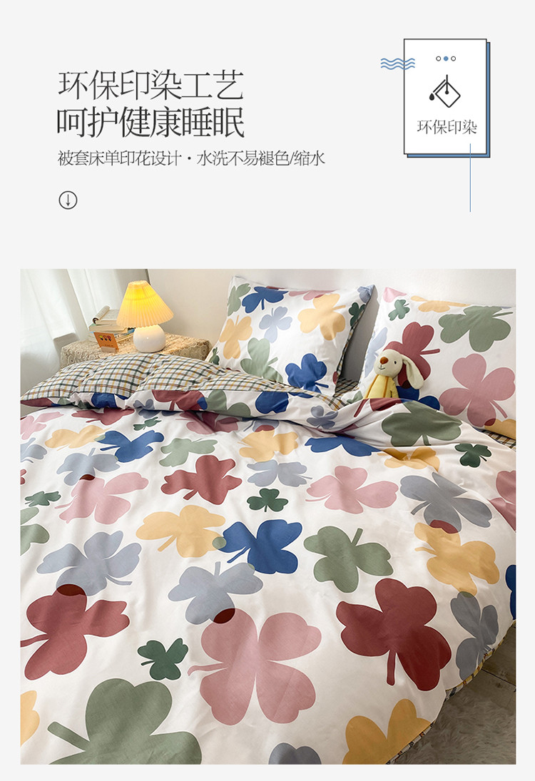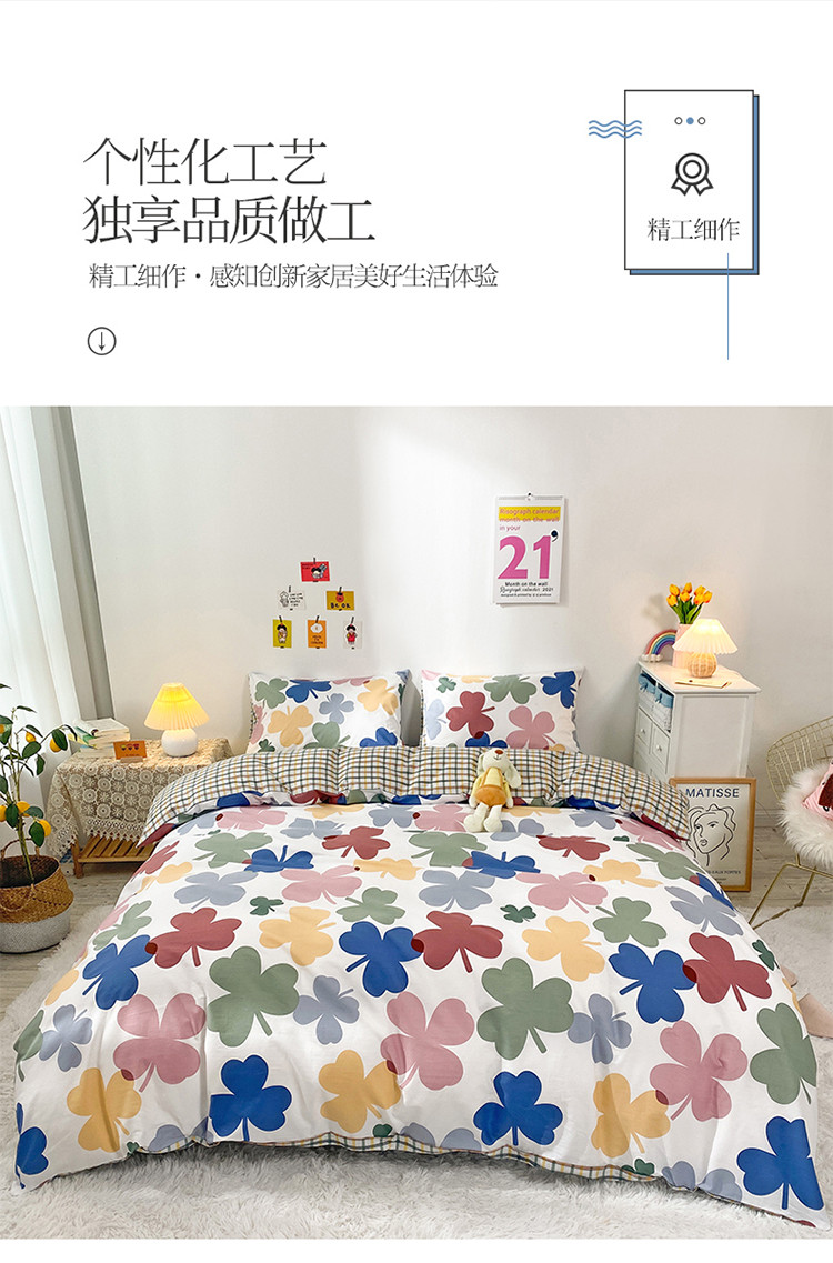 珺柔家纺 2021新款全棉印花四件套 四叶草