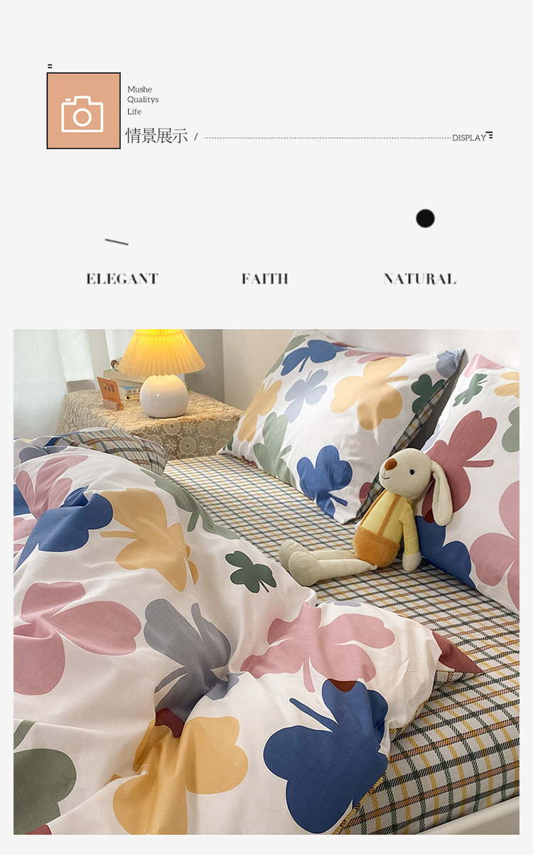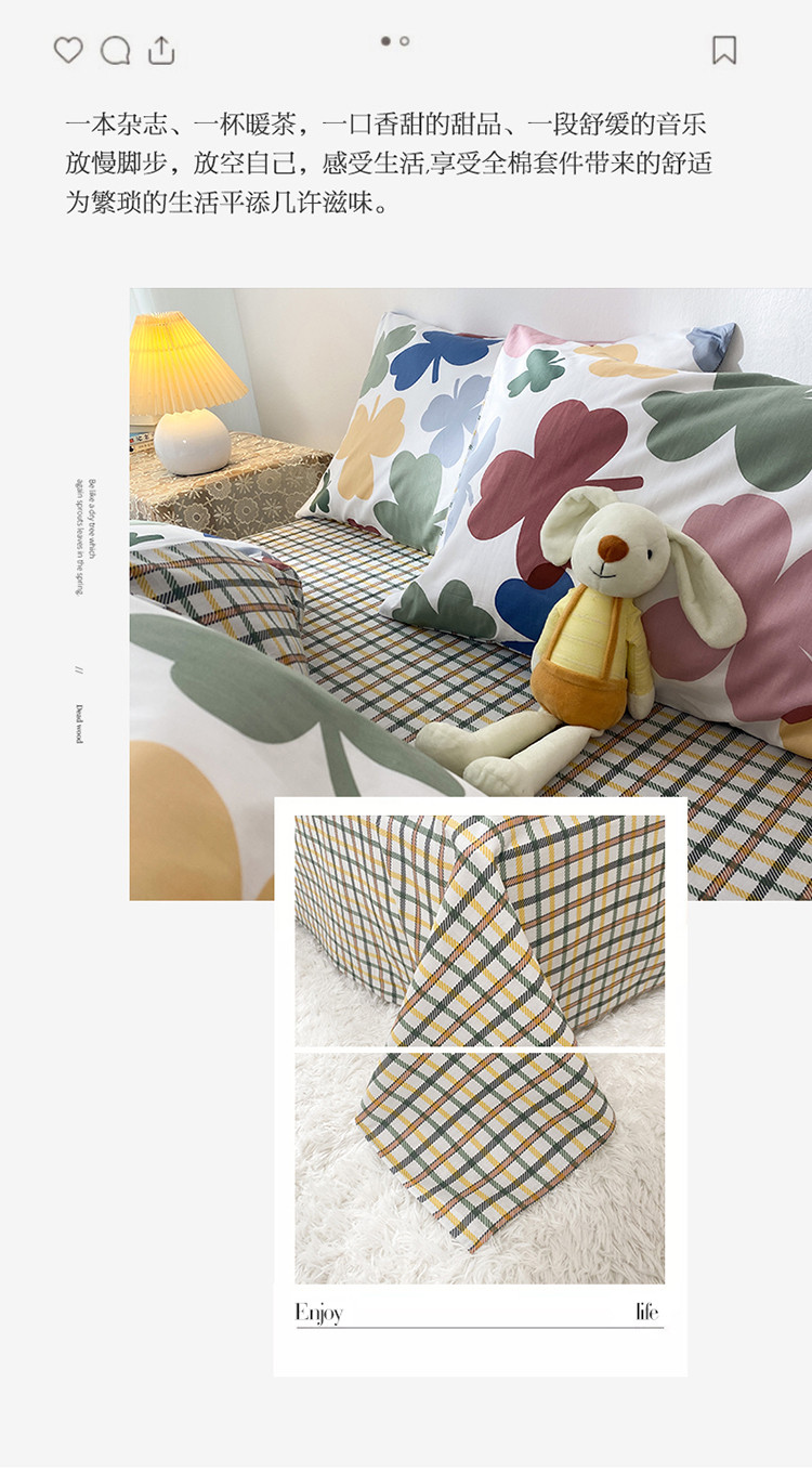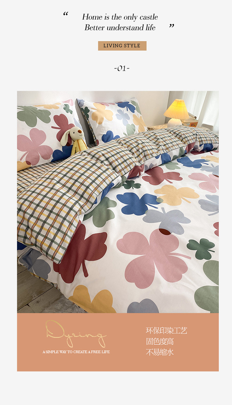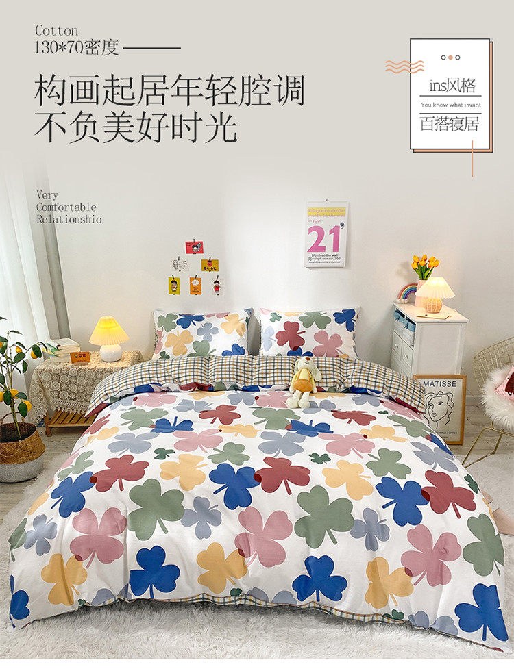 珺柔家纺 2021新款全棉印花四件套 四叶草