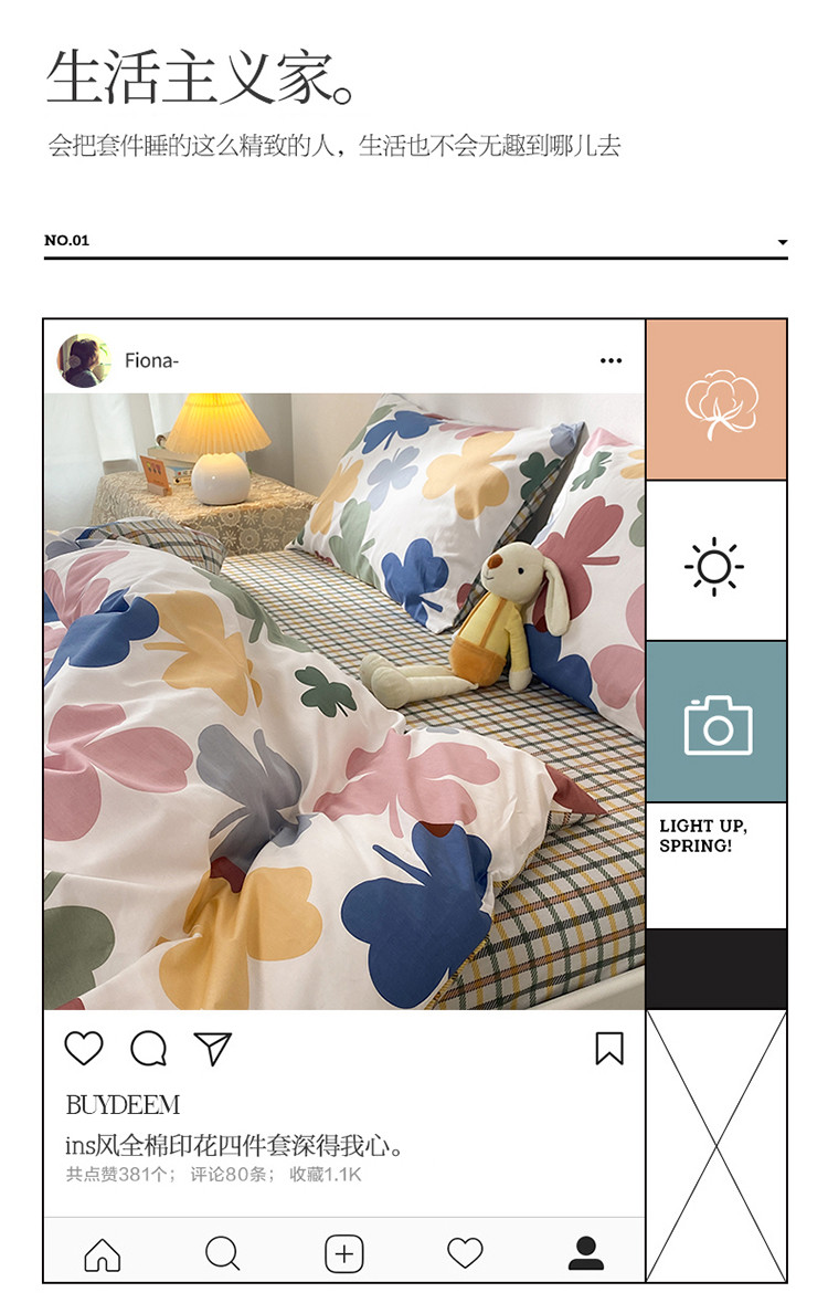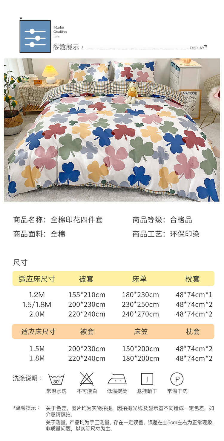 商品名称:珺柔家纺 2021新款全棉印花四件套 四叶草