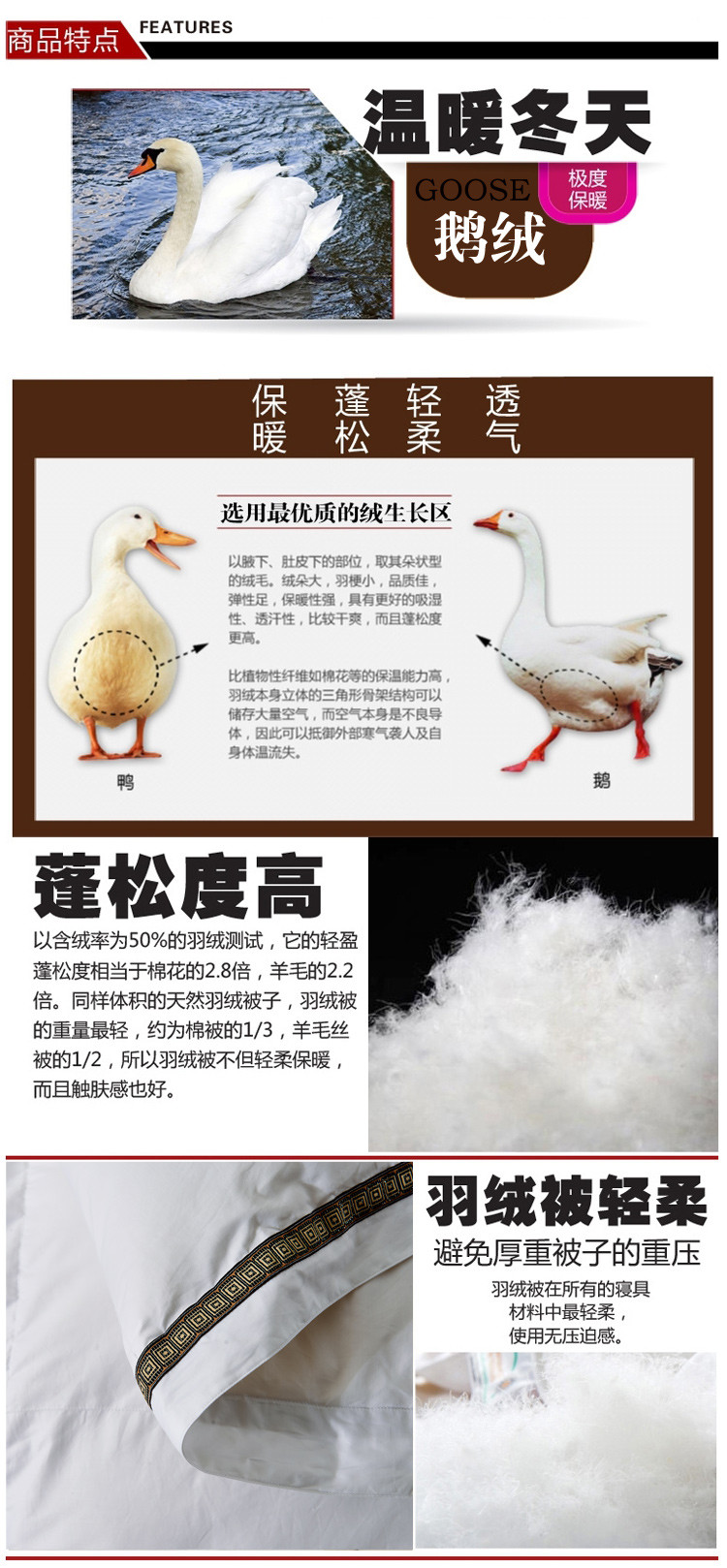 (总)晋瑞 红顶鹅绒馆 新款美家羽绒被丝棉贡缎提花鹅绒被,美家羽绒被