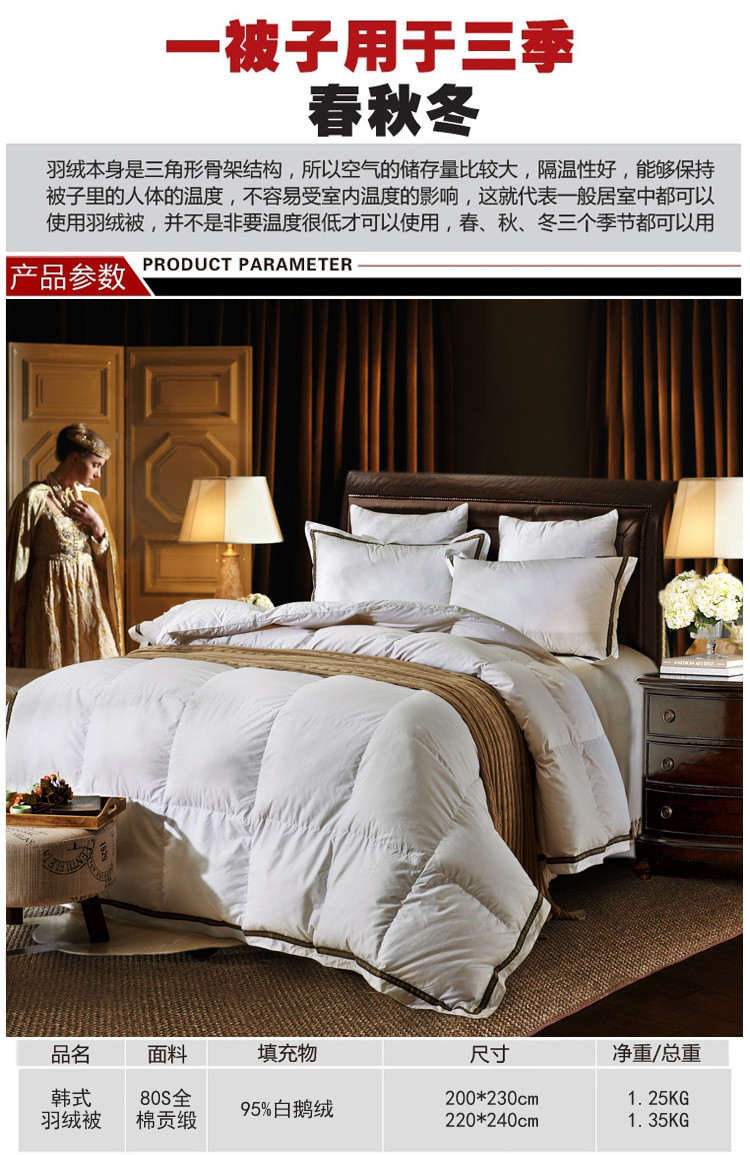 商品名称:新款60s全棉贡缎韩式酒店款鹅绒被羽绒被