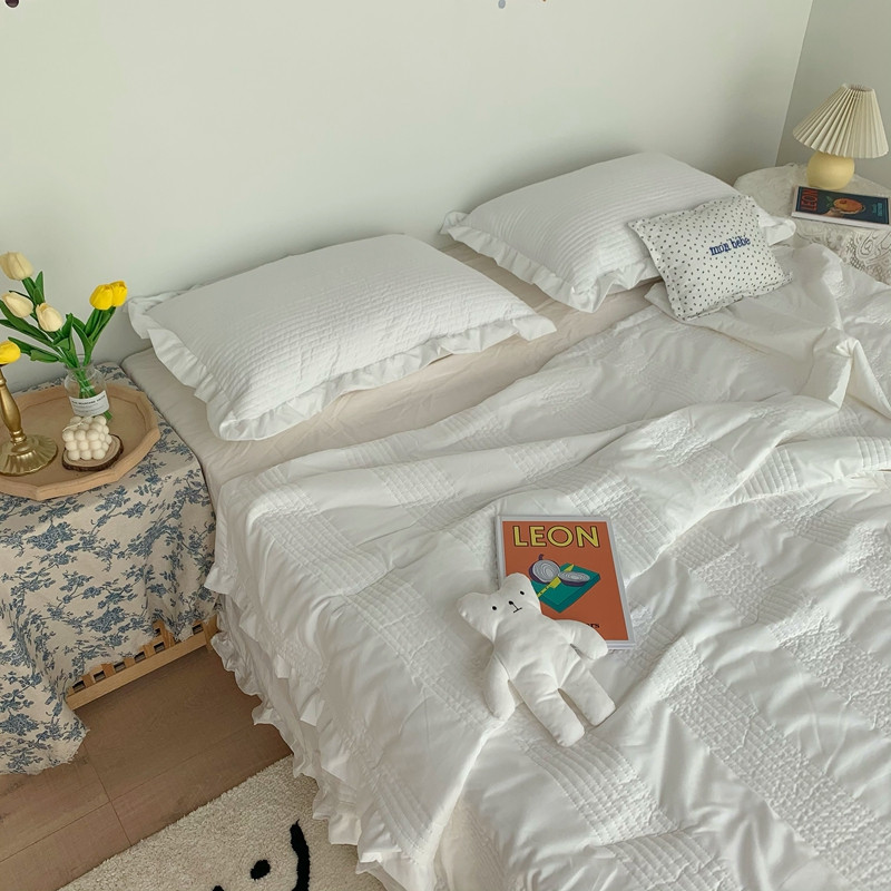商品名称:六巷胡同 2022新款出口韩国款雪纺纱夏被 本白