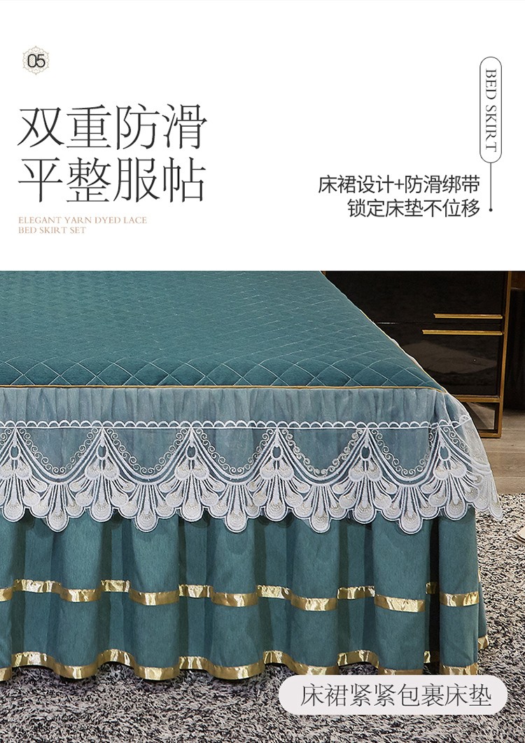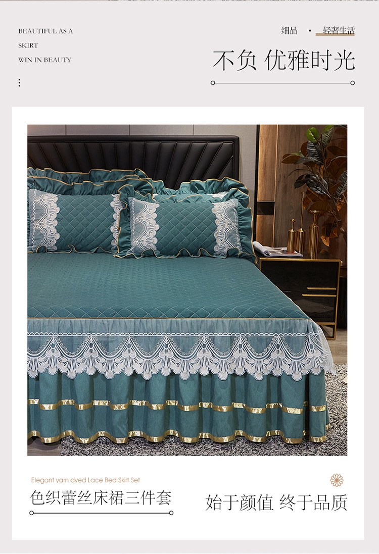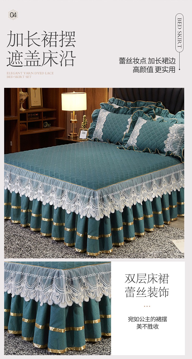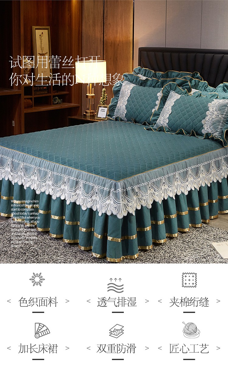 商品名称:网红馆 2025新款芭莎风情床裙三件套 黛绿色