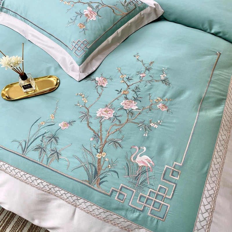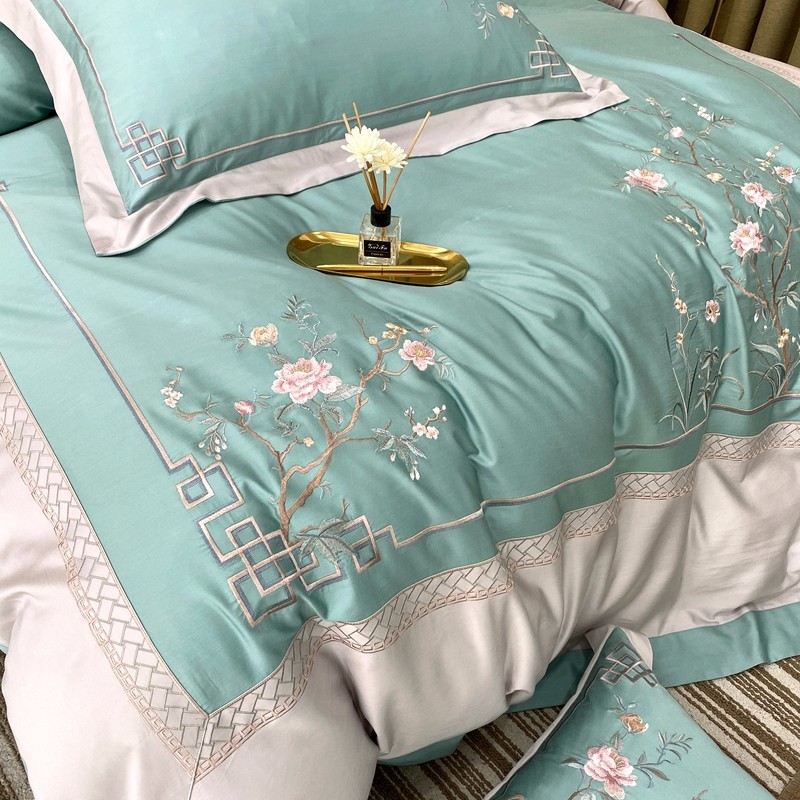 (总)星尚家纺 2024新款全消光230g牛奶绒刺绣保暖四件套-花漾,晨雾绿,豆沙粉,樱花粉