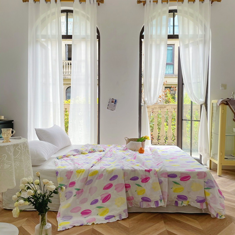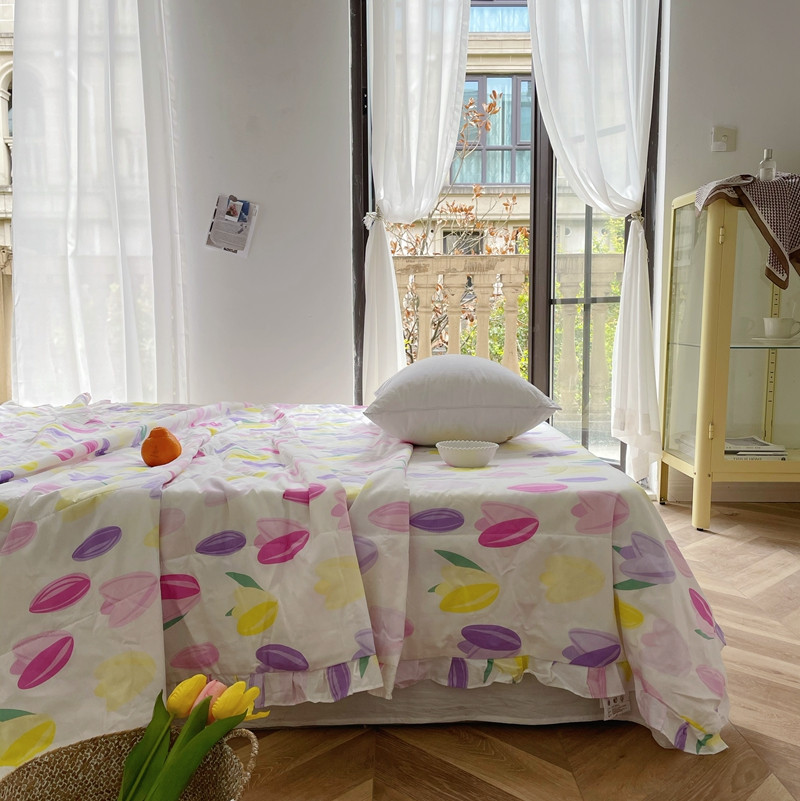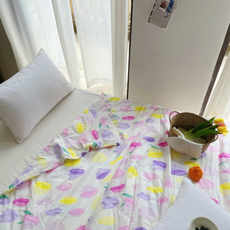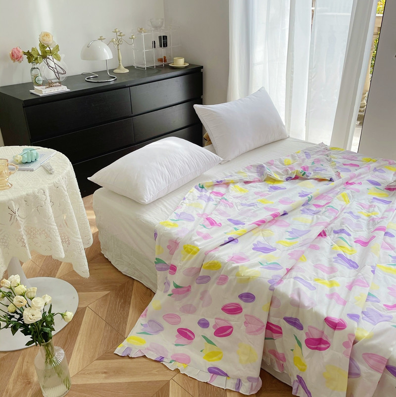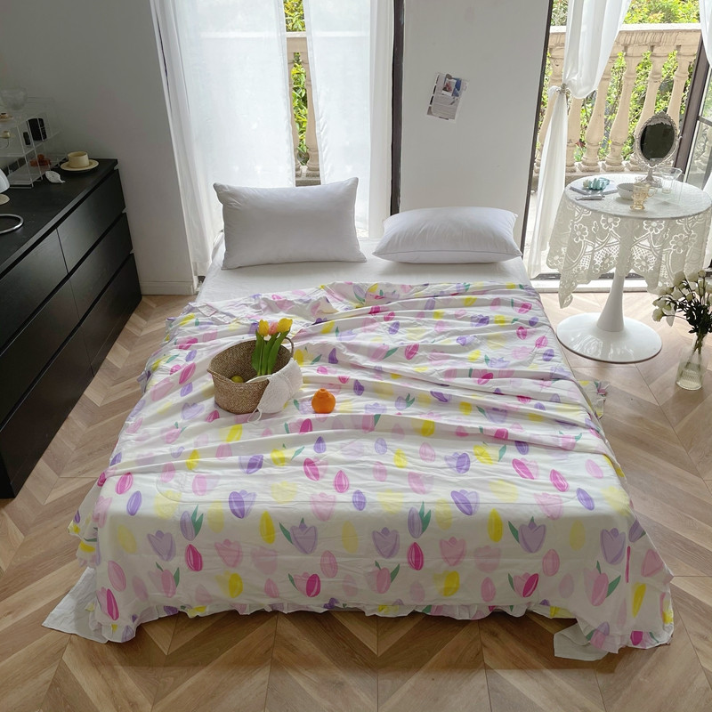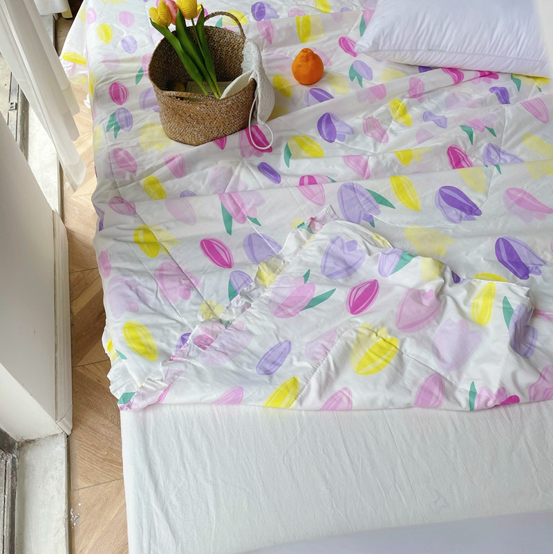 星期八 2021新款田园风奶油花边大豆夏被 郁金香