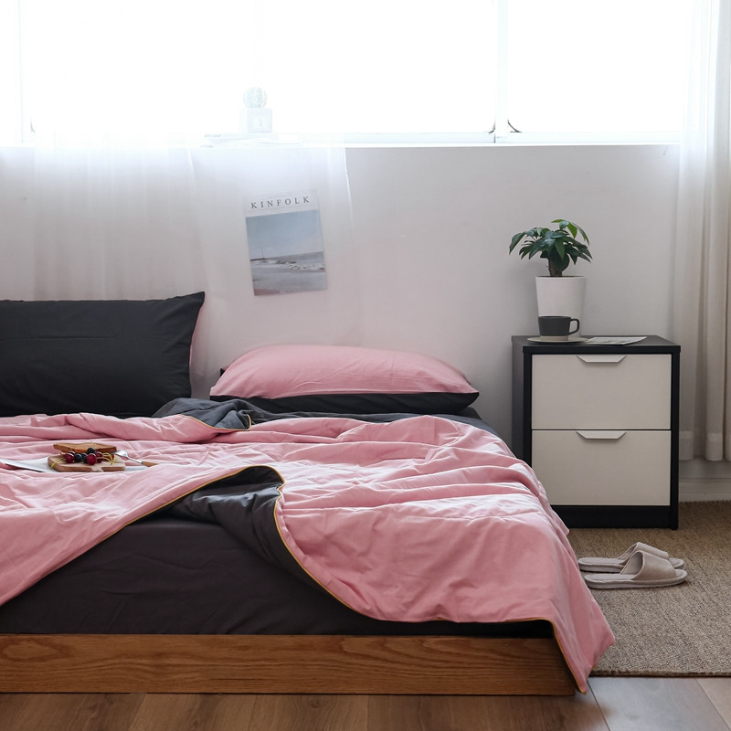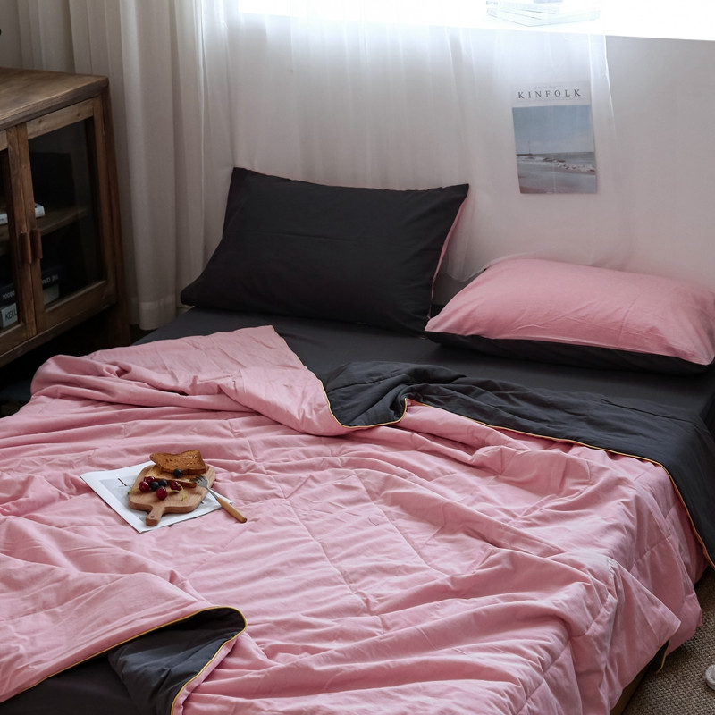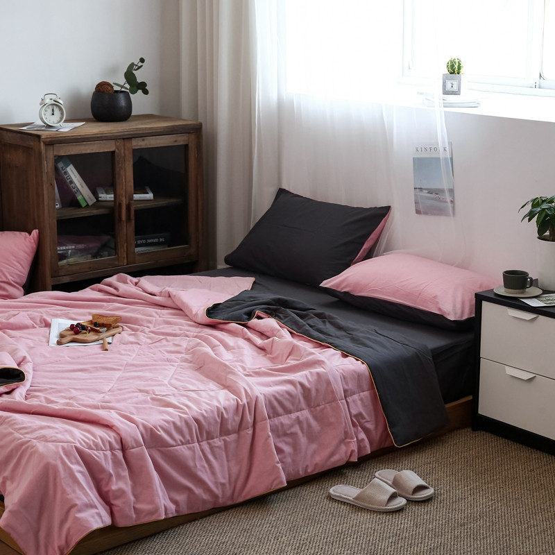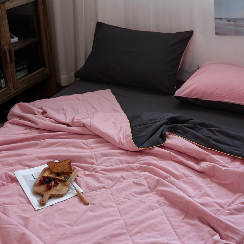 安莱生活 2021新款全棉水洗棉双拼纯色夏被 玫粉+铁灰