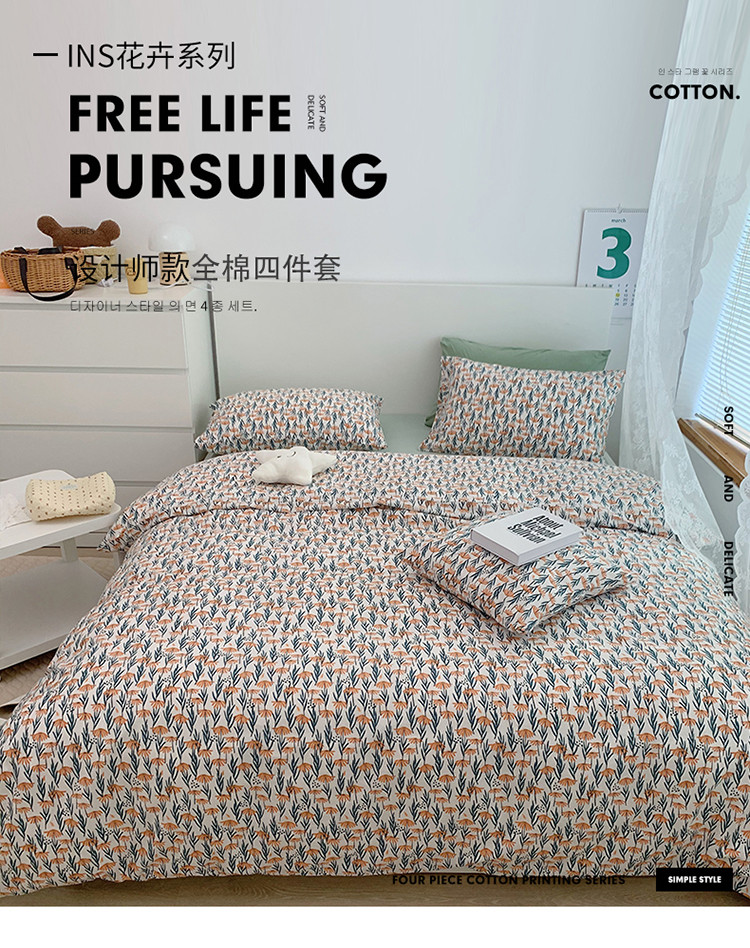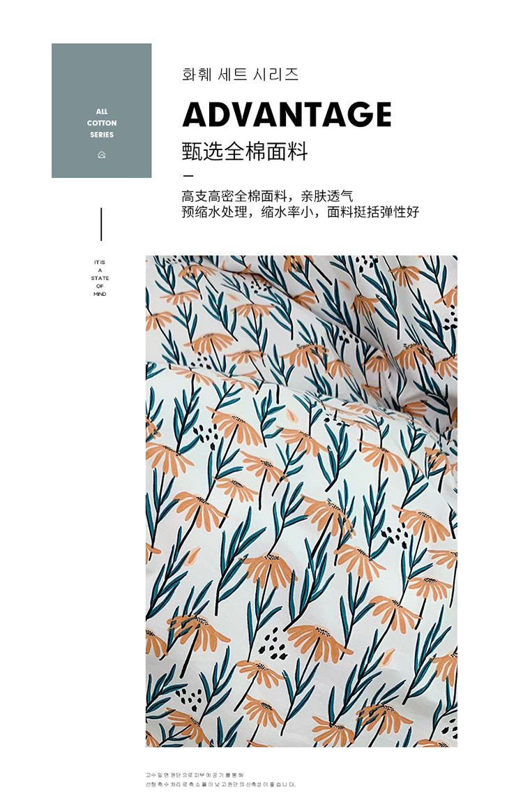 当前位置: 91家纺网 > 商品网购 > 床品套件 > 四件套 > 全棉普通四件套 > 尺素 全棉40支喷气13372韩国ins设计师四件套 落英