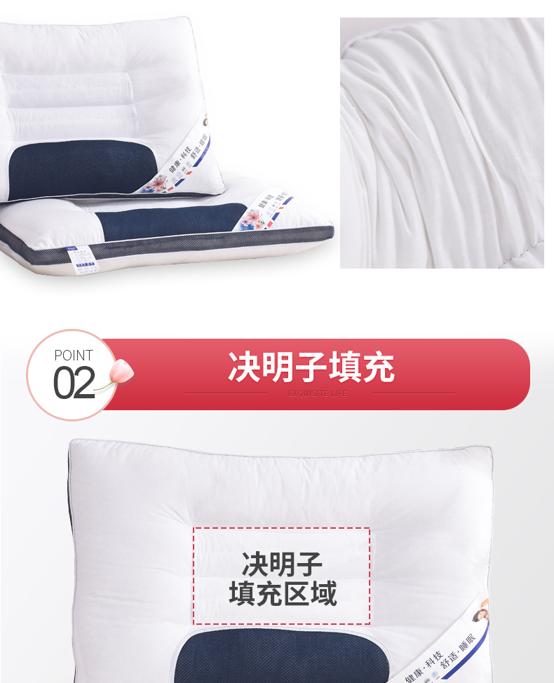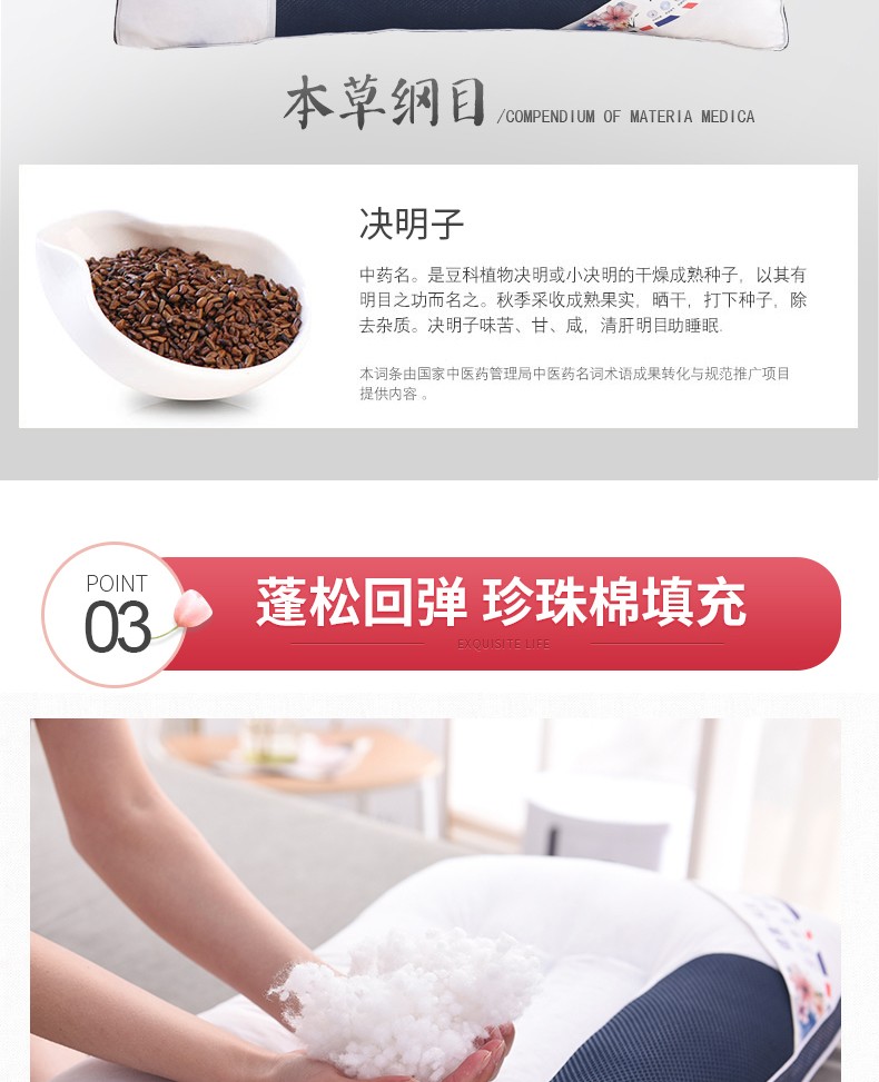 商品名称:全棉磁疗决明子立体枕芯 养身保健枕头