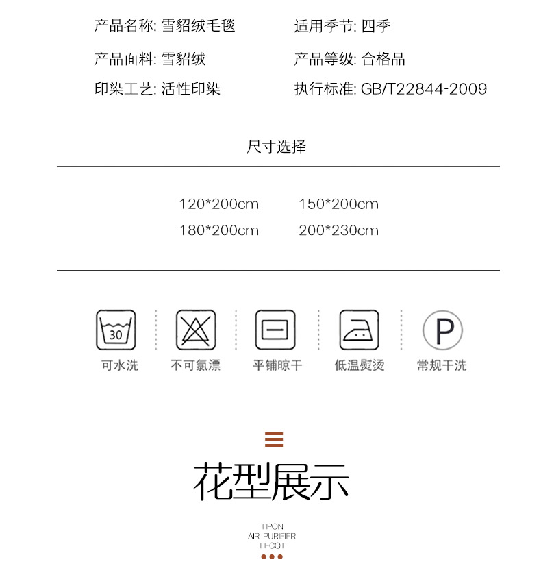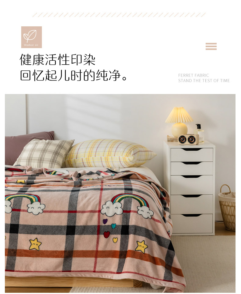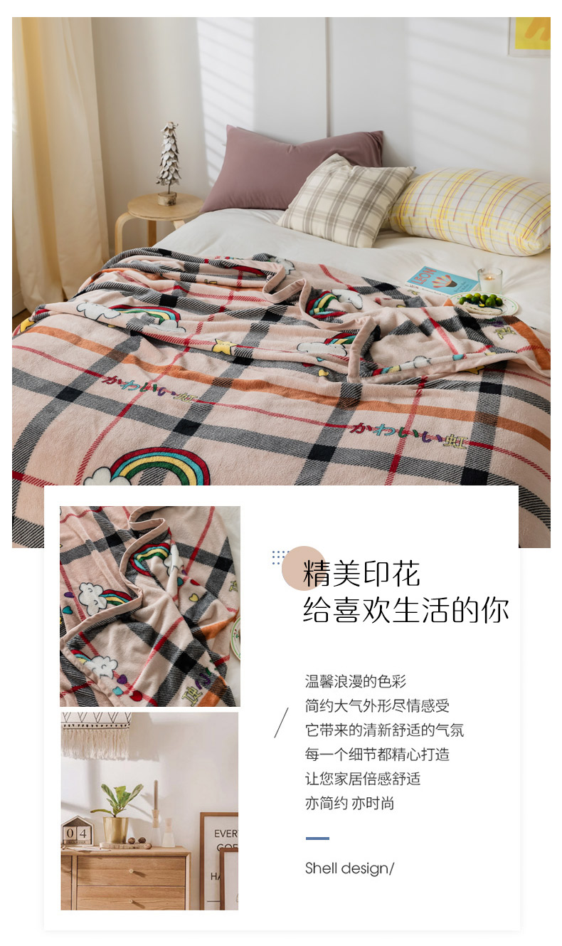 坦客毯业 2025年新款印花法莱绒毛毯沙发盖毯午睡毯子 简卉,简卉