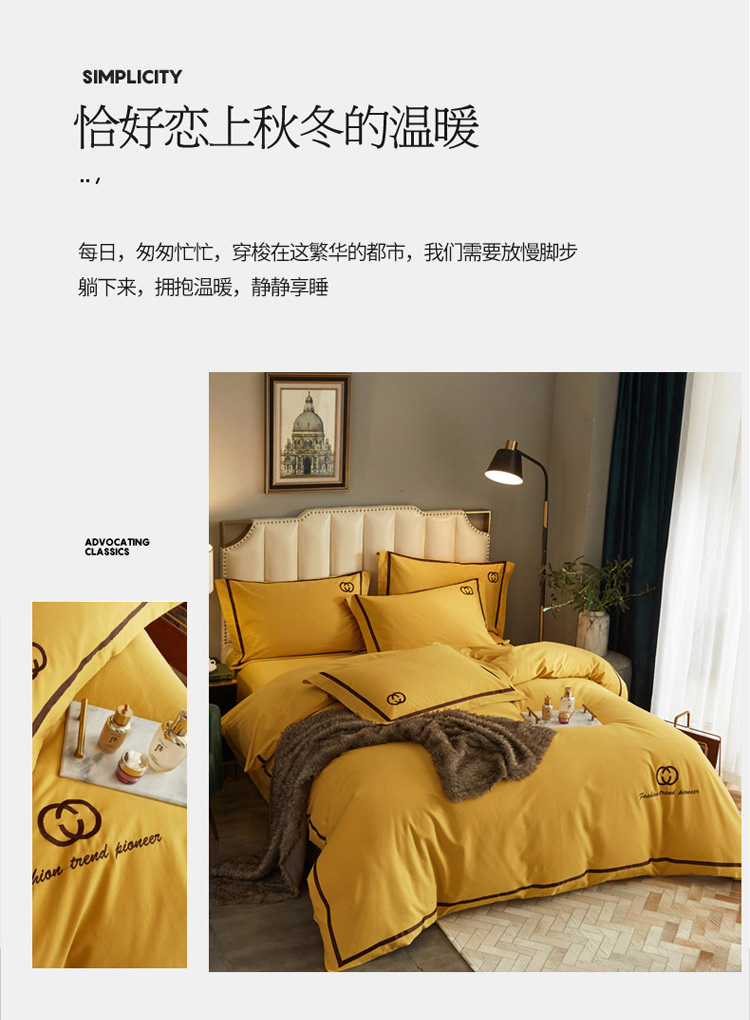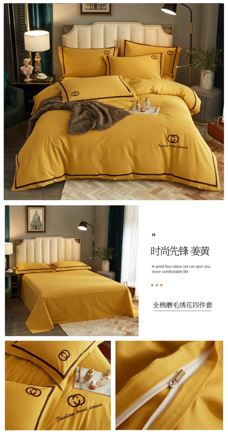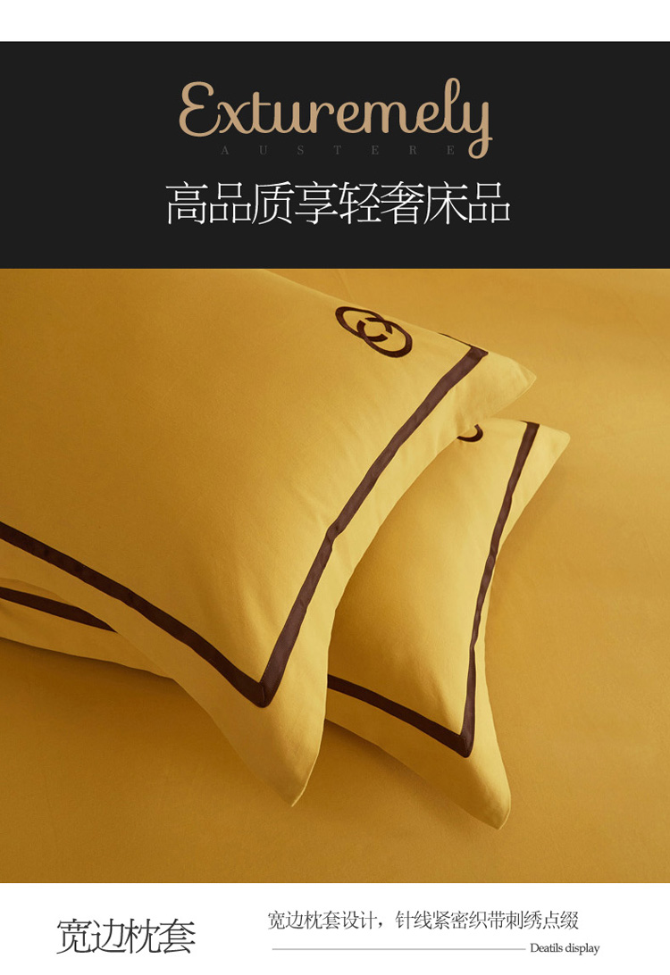 启航2021秋冬爆款全棉磨毛简约刺绣款四件套时尚先锋 时尚先锋-姜黄