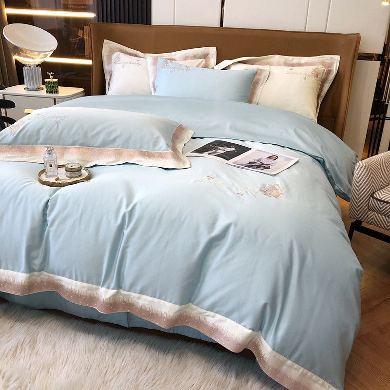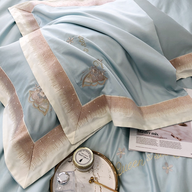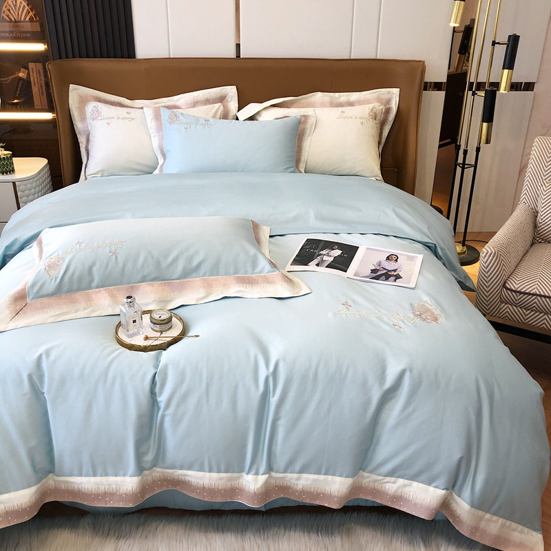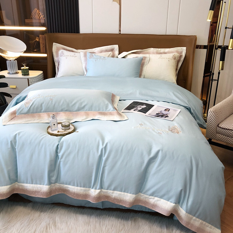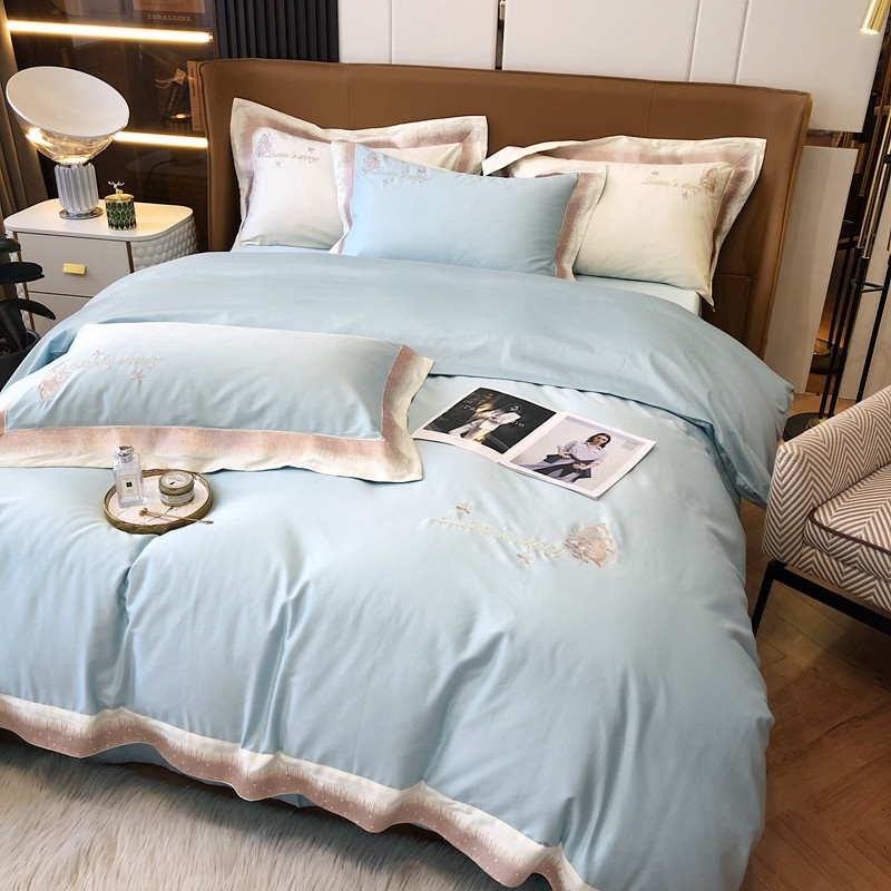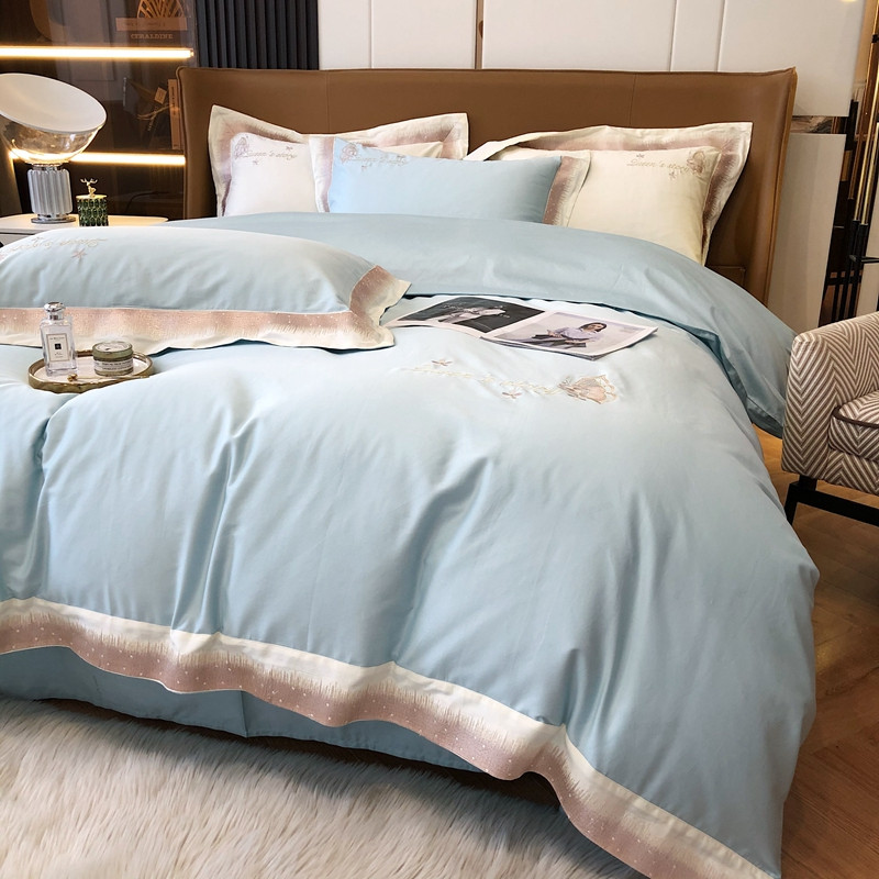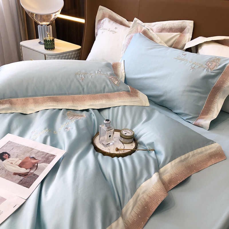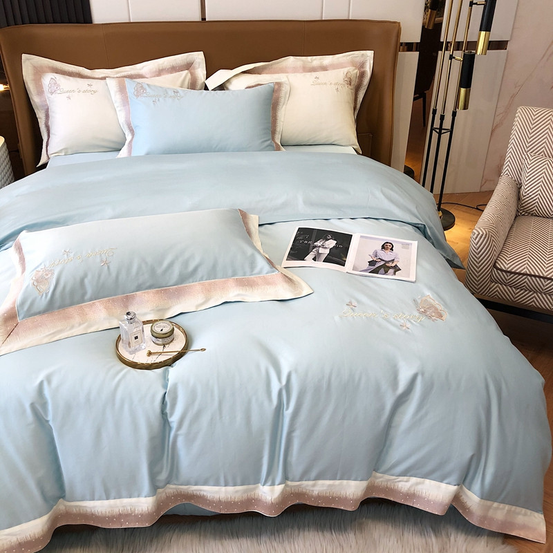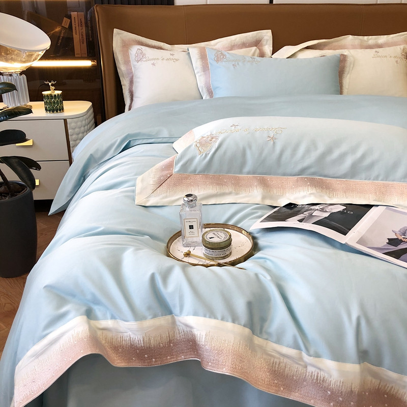 商品名称:馨蕊2021秋冬新品100支澳棉四件套高定系列 蝶恋-湖水蓝
