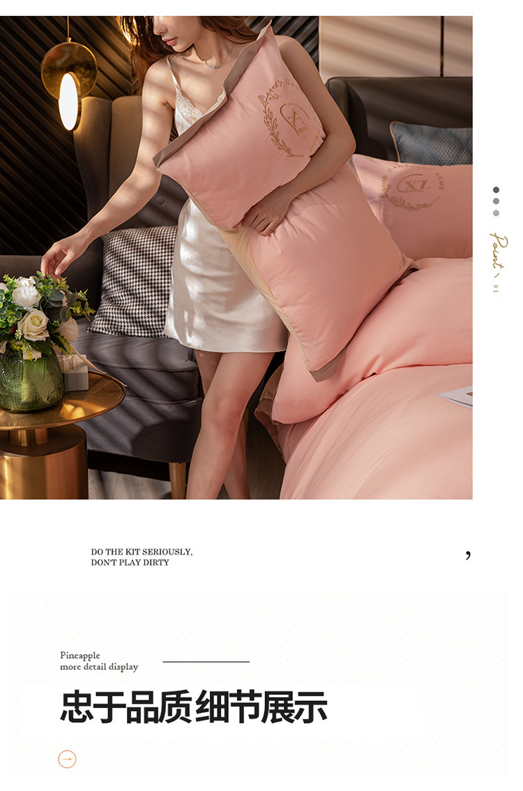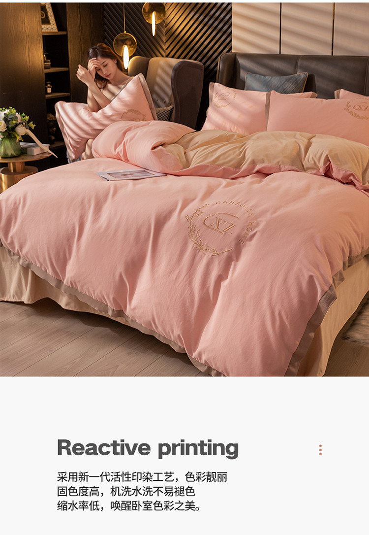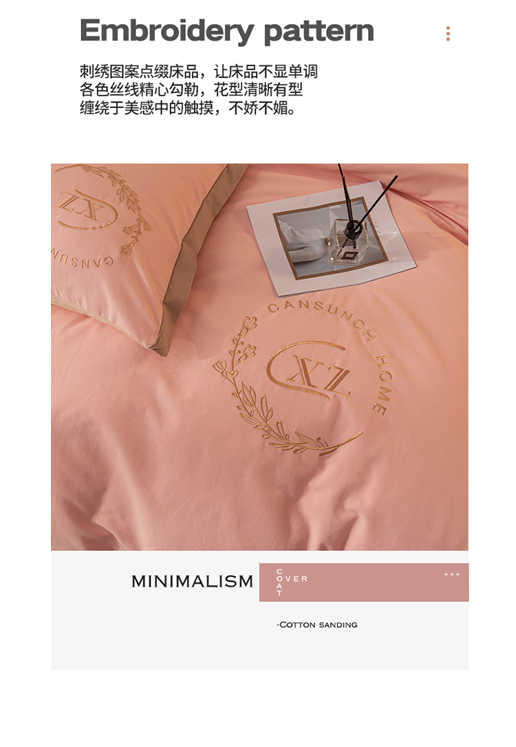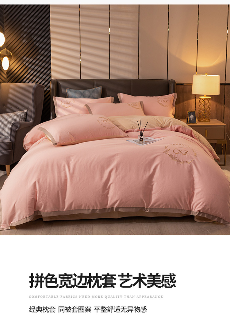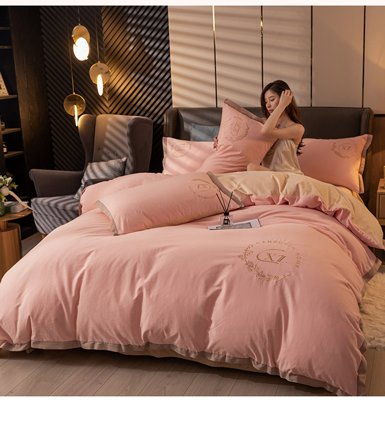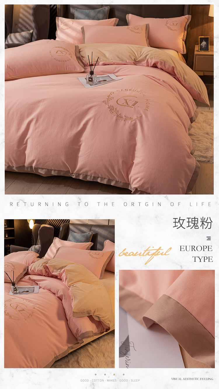 商品名称:蓝米卡夫 2024冬季升级款保暖全棉磨毛牛奶绒刺绣四件套 玫瑰粉
