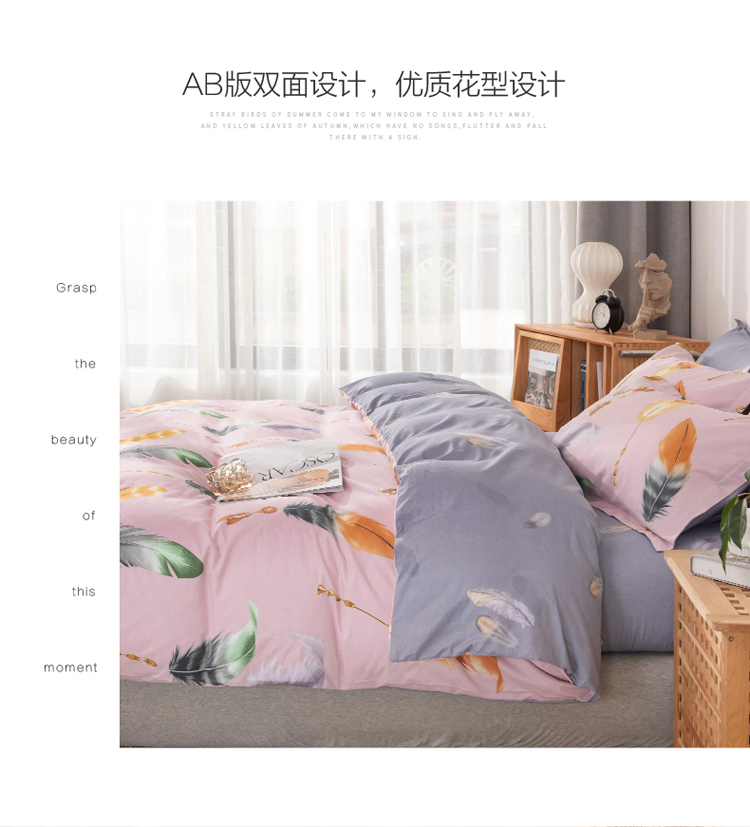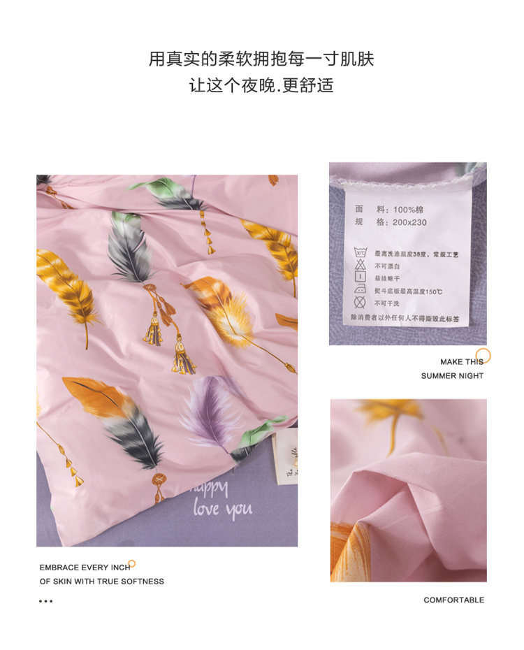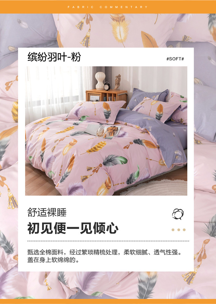 商品名称:星期三2021年9月新款铂金全棉13372四件套(加老板微信有会员价)缤纷羽毛-粉