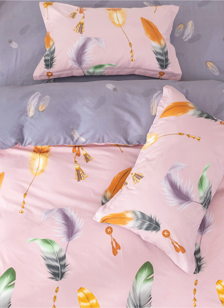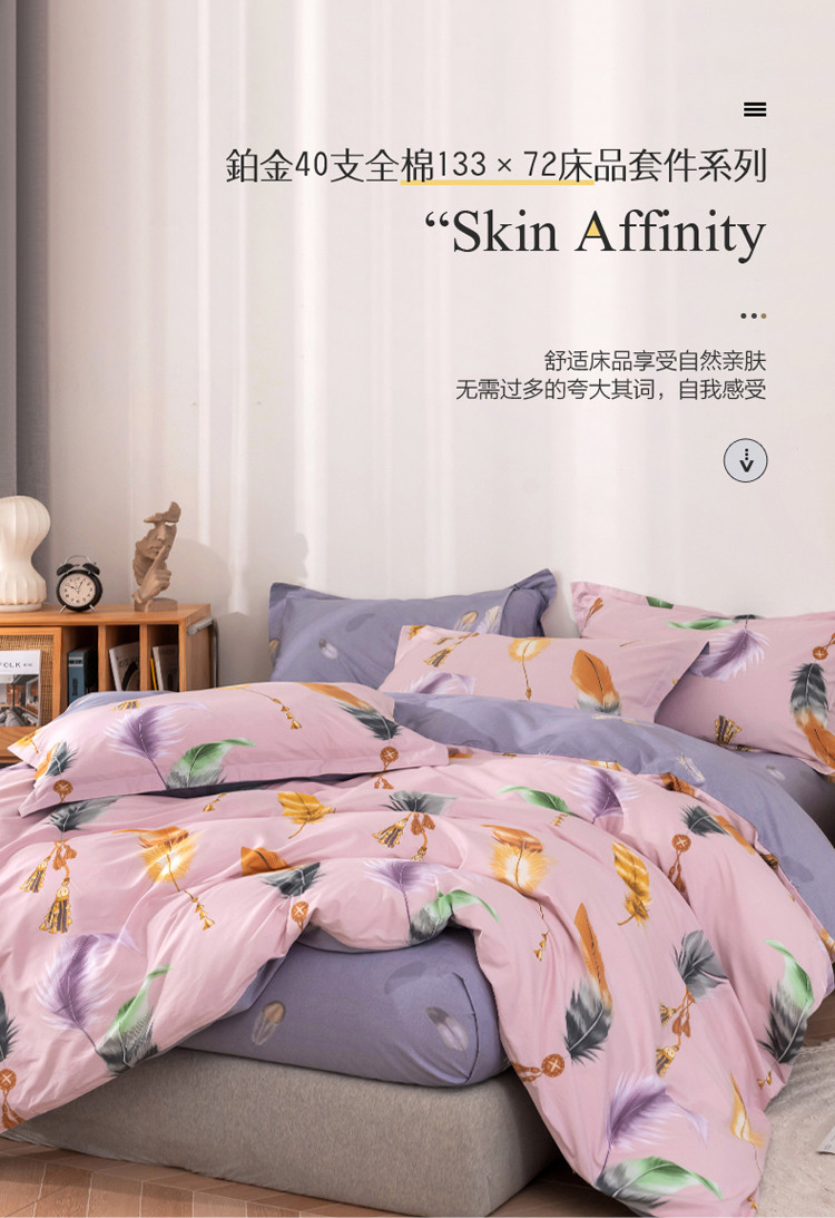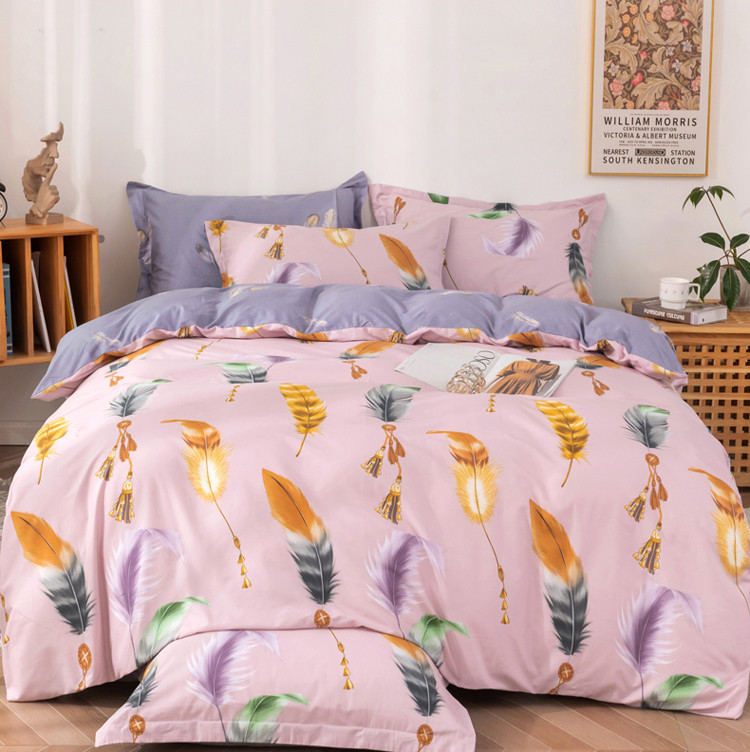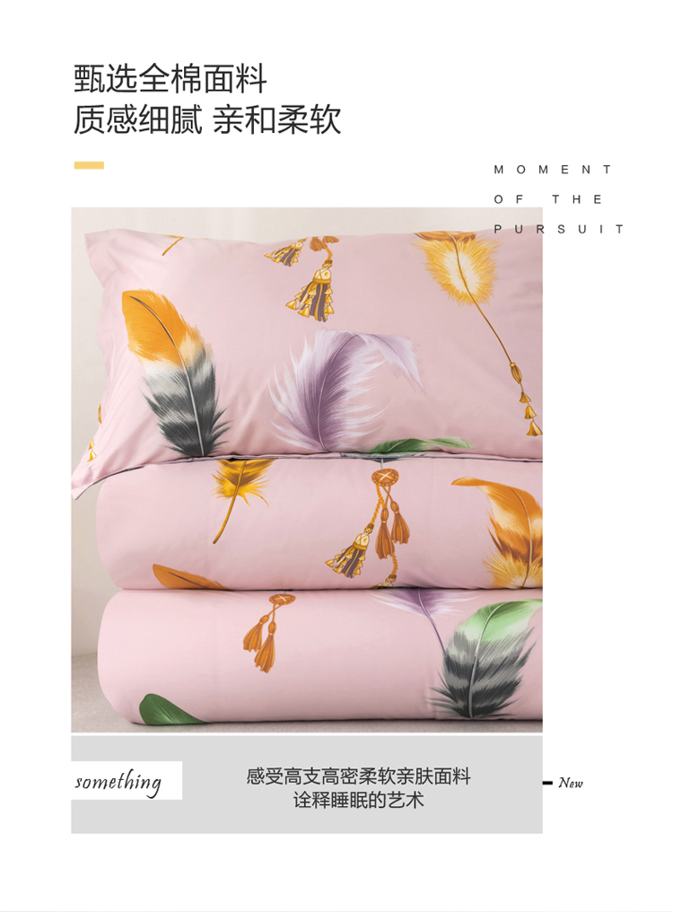 星期三2021年9月新款铂金全棉13372四件套(加老板微信有会员价)缤纷羽毛-粉