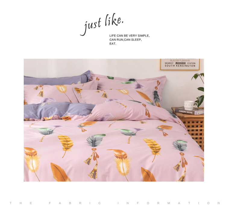 (总)星期三 2021新款时尚羽毛系列全棉13372四件套(加老板微信有会员价),缤纷羽毛-粉,缤纷羽毛-绿,羽叶,羽毛信封-黄
