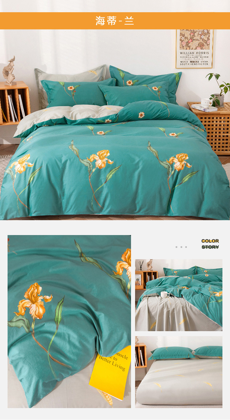 (总)星期三 2025年4月新款铂金全棉纯棉13372四件套 加微信有会员价,橙日幽香,花的旅途,花几度-绿,花佳境-咖,花枝草蔓,柔纱花影,棠影寻-粉,小雨录-紫,星际漫游