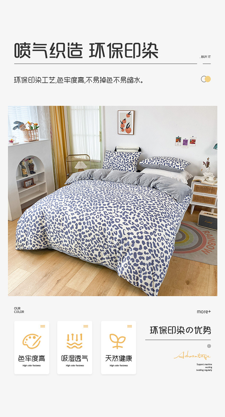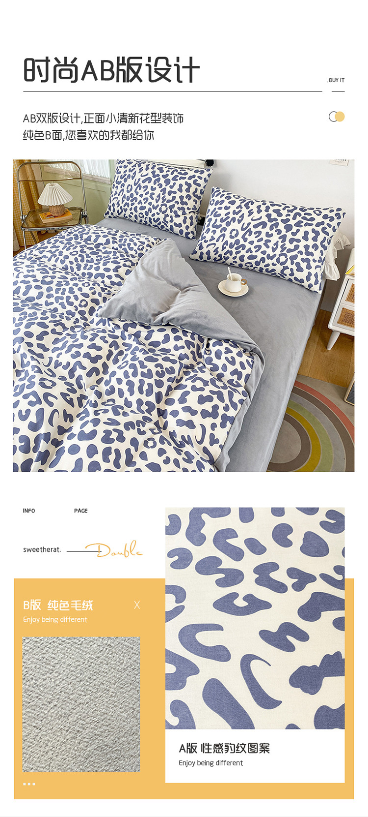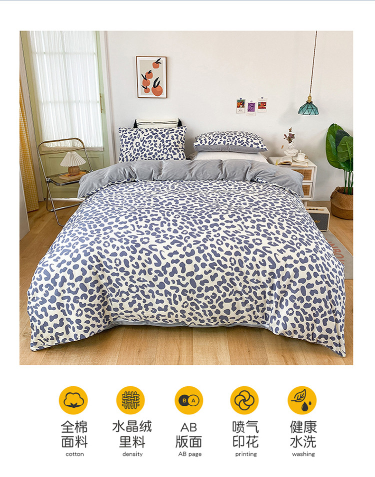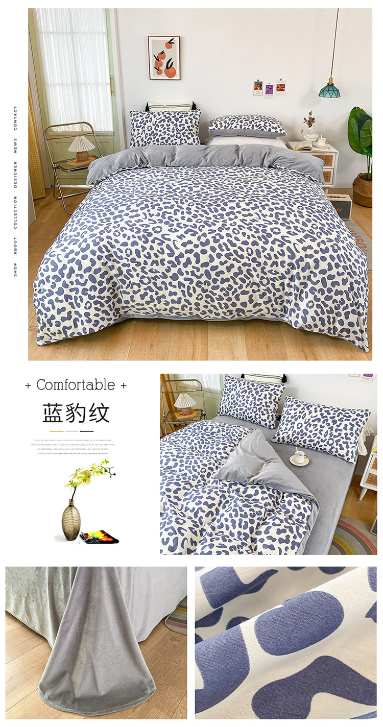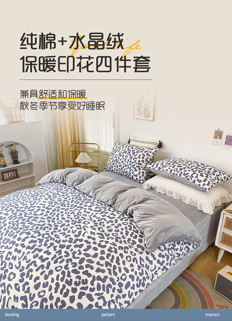 珺柔家纺2021新款全棉印花水晶绒四件套蓝豹纹PPP