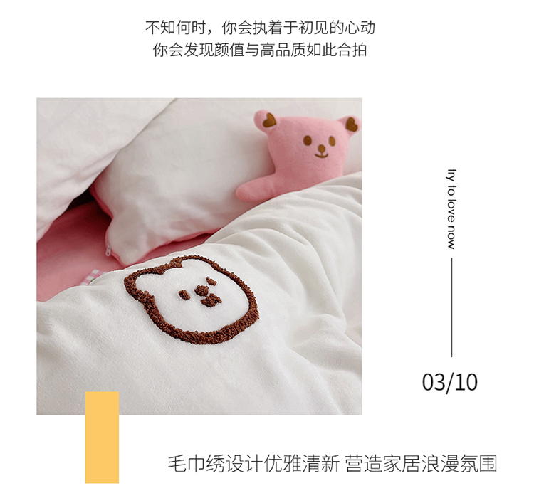 雅居纺 2022新款牛奶绒毛巾绣四件套拍摄风格1 可爱熊-白粉