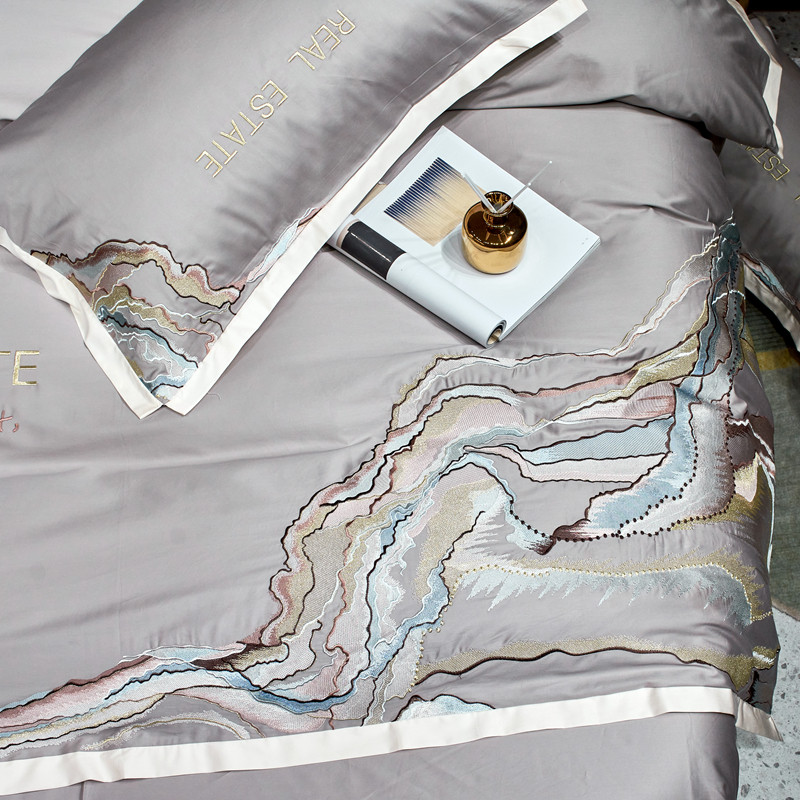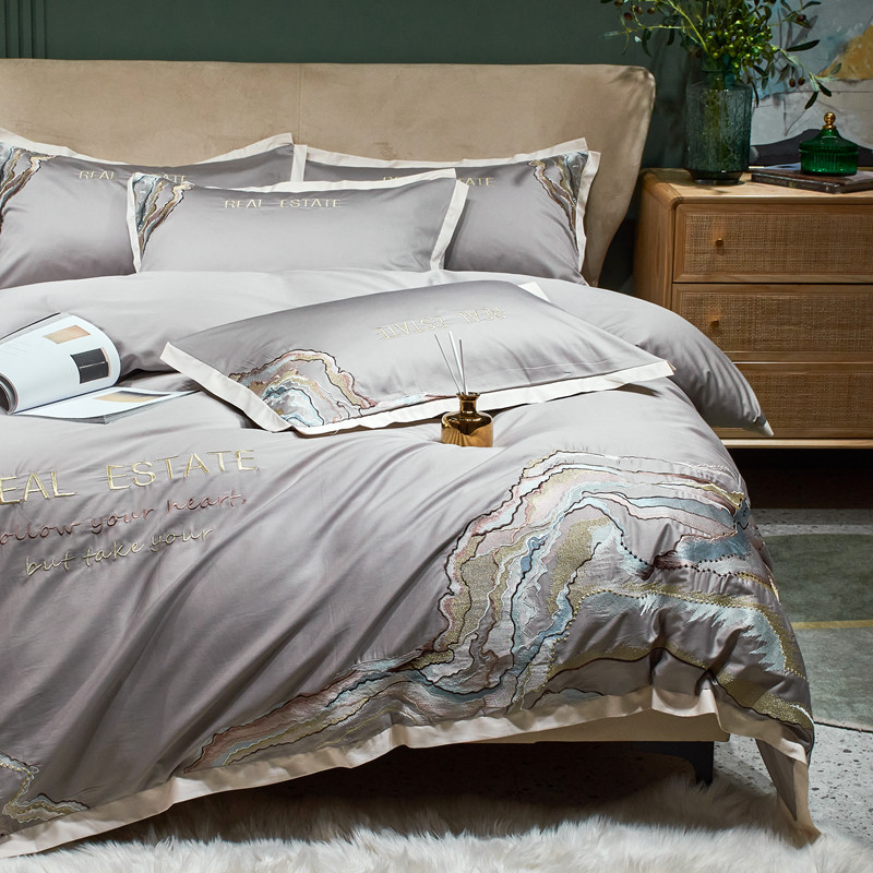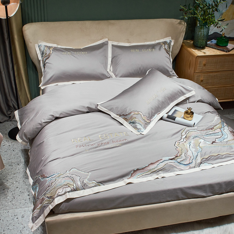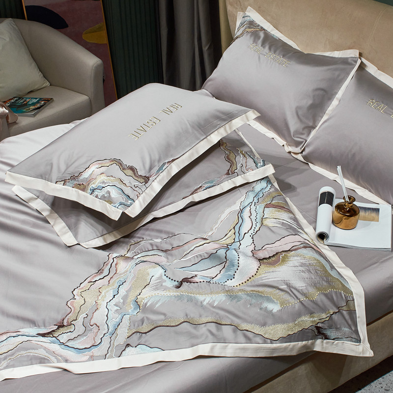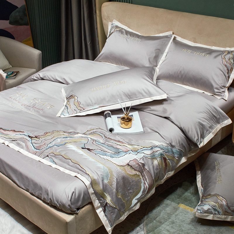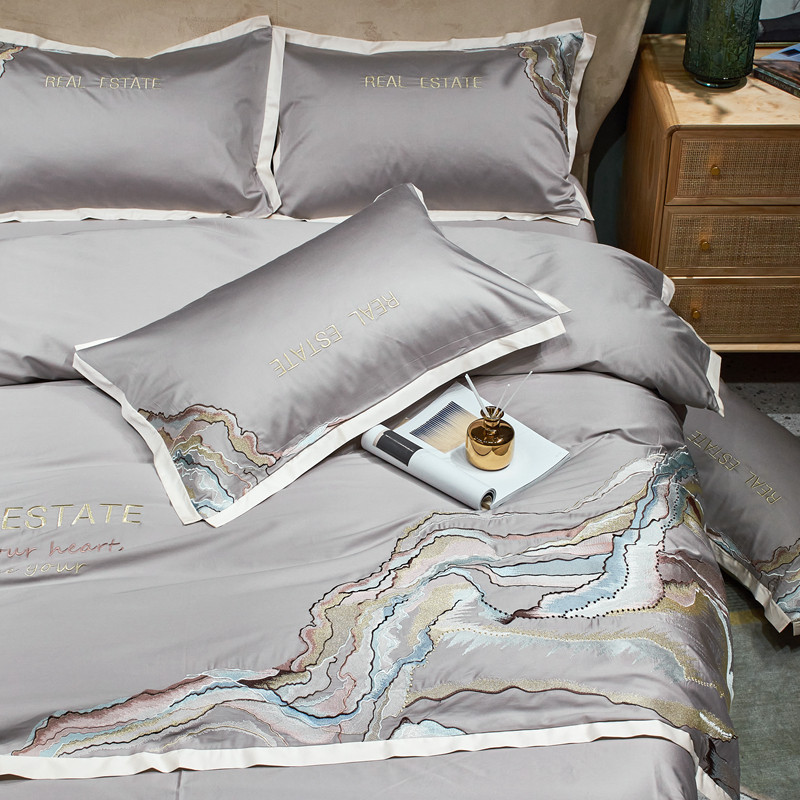 星尚 2021新款秋冬100支长绒棉四件套-大理石纹 浅灰