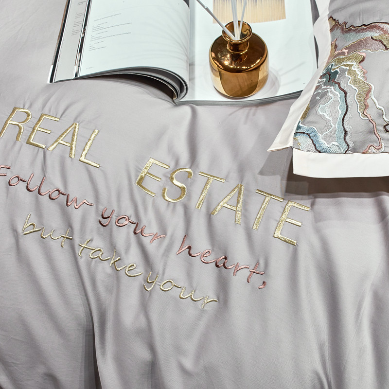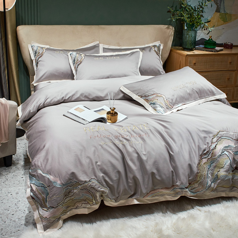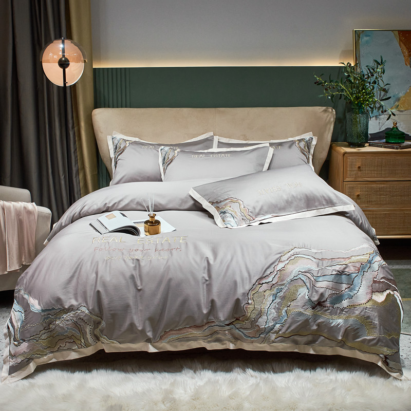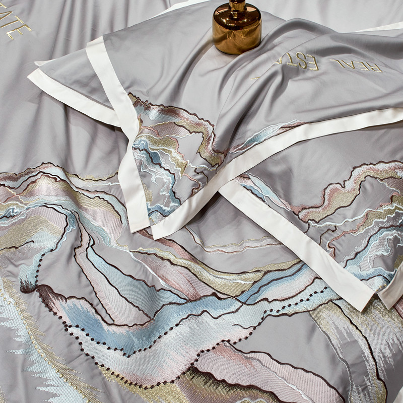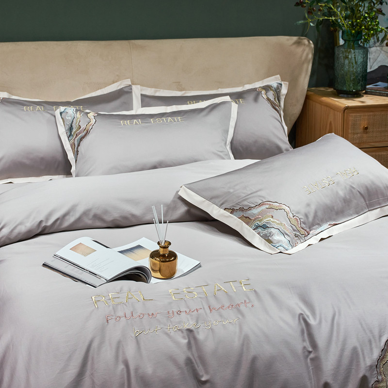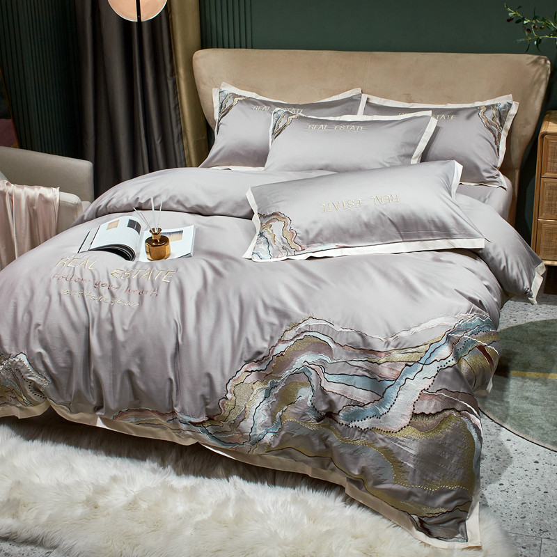 星尚 2021新款秋冬100支长绒棉四件套-大理石纹 浅灰